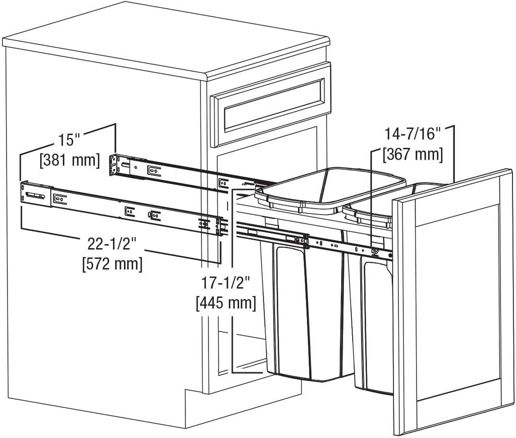 | Item Type Name | 18 in. H x 15 in. W x 23 in. D Steel In-Cabinet 35 Qt. Double Top Mount Pull Out Trash Can |