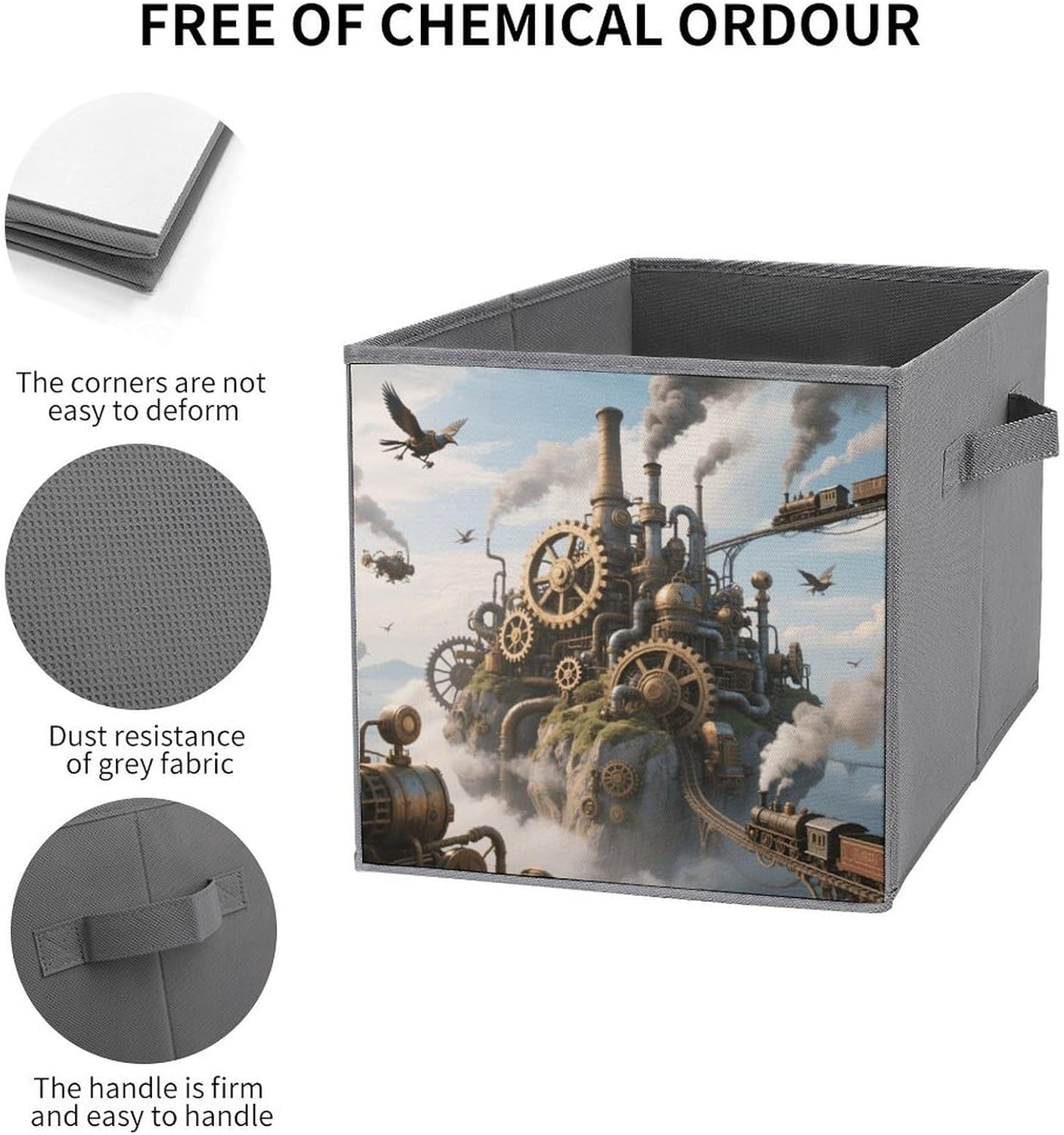 Made of durable, water-resistant 2-piece Oxford Cloth for long-lasting use. Tear-resistant for daily use. The lidless design allows for quick access to items, perfect for storing frequently used items such as clothing or blankets. Sturdy double handles on both sides make it easy to carry between rooms. The reinforced, removable base provides good structure and stability. Simply disassemble for compact storage or easy cleaning, the 10.6x10.6x10.6 inch square size has plenty of space to store large items and fits neatly under the bed, on a shelf or in a closet. Use it in the bedroom, living room, garage, or even as a stylish laundry basket.