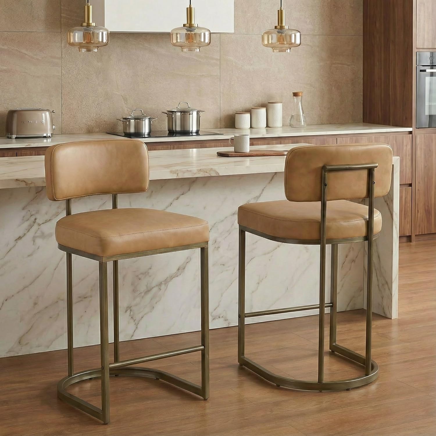 With modern design and clean profile, the modern bar stool is an attractive addition to any decor. The layered chair seat cushion add comfort, suitable for long-term sitting. The smooth chair back, simple but elegant, is ergonomically designed to provides most ease. Support slats offer a comfortable footrest while seated.