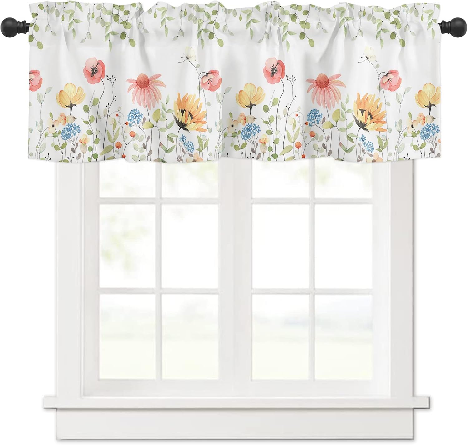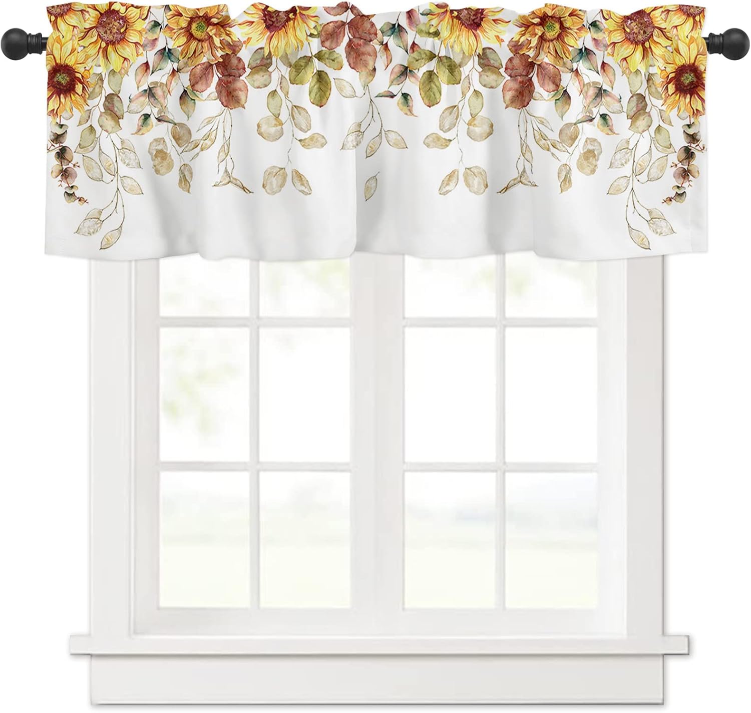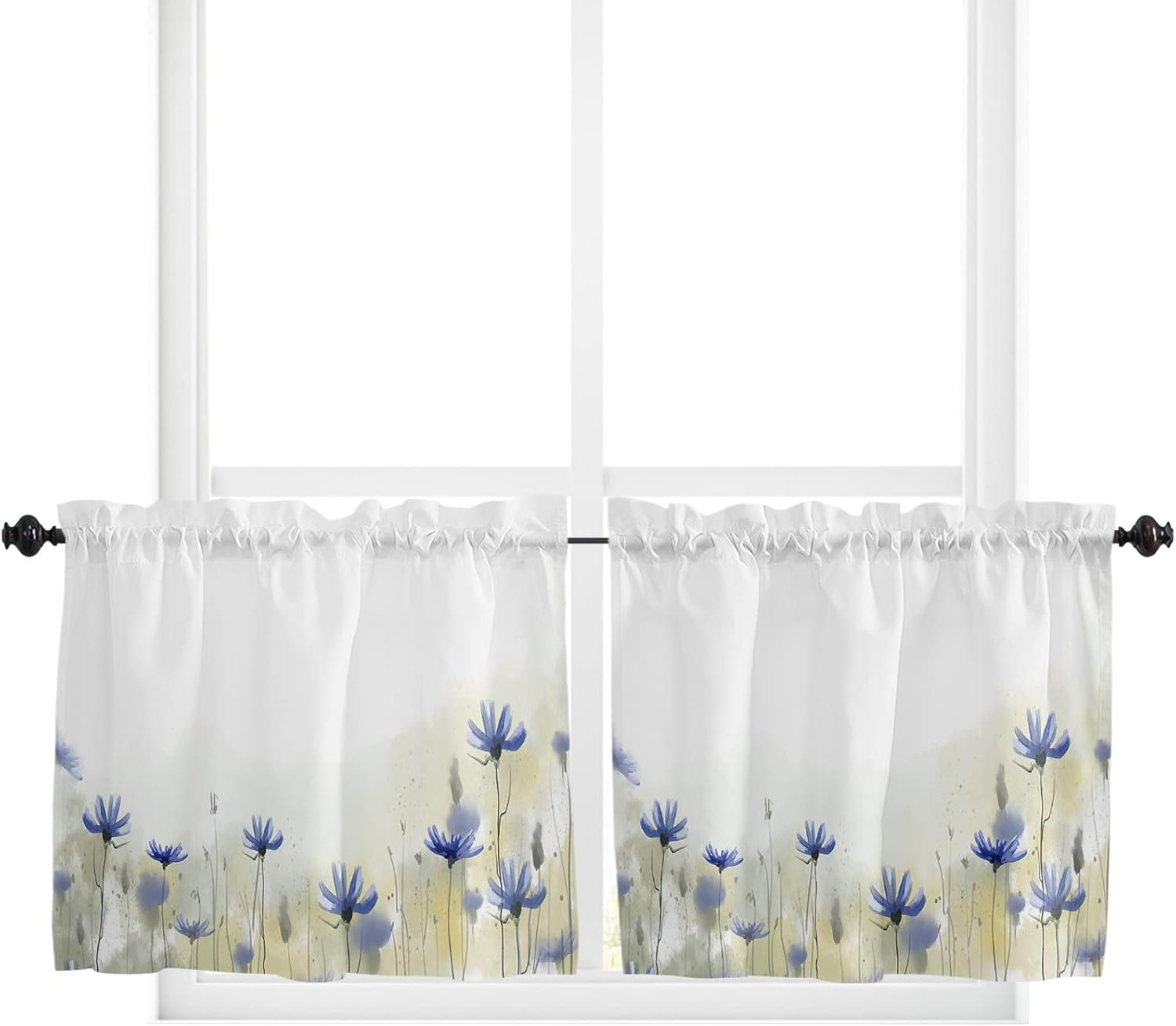 3 PCS CURTAIN SET 2 sizes are available: 🌸Valance Measurements: 54 Inch Wide by 18 Inch Length. 2 Tiers: Each Tier Measures 27.5 Inch Wide by 24 Inch Length. 🌸Valance Measurements: 54 Inch Wide by 18 Inch Length. 2 Tiers: Each Tier Measures 27.5 Inch Wide by 36 Inch Length. GOOD PRIVACY They will provide you the necessary privacy and allow just the right amount of light into your room. ROD POCKET The pocket holes are large enough for most rods in the market, easy installation and move. Premium quality printing ensures vibrant colors and long-lasting durability. GOOD PERFORMANCE Short and small curtains perfect addition to your kitchen, loft, laundry room, guest bathroom, farmhouse, living room, dining room,office, cafe,hotel or other public place, add a refreshing charm to your small window.