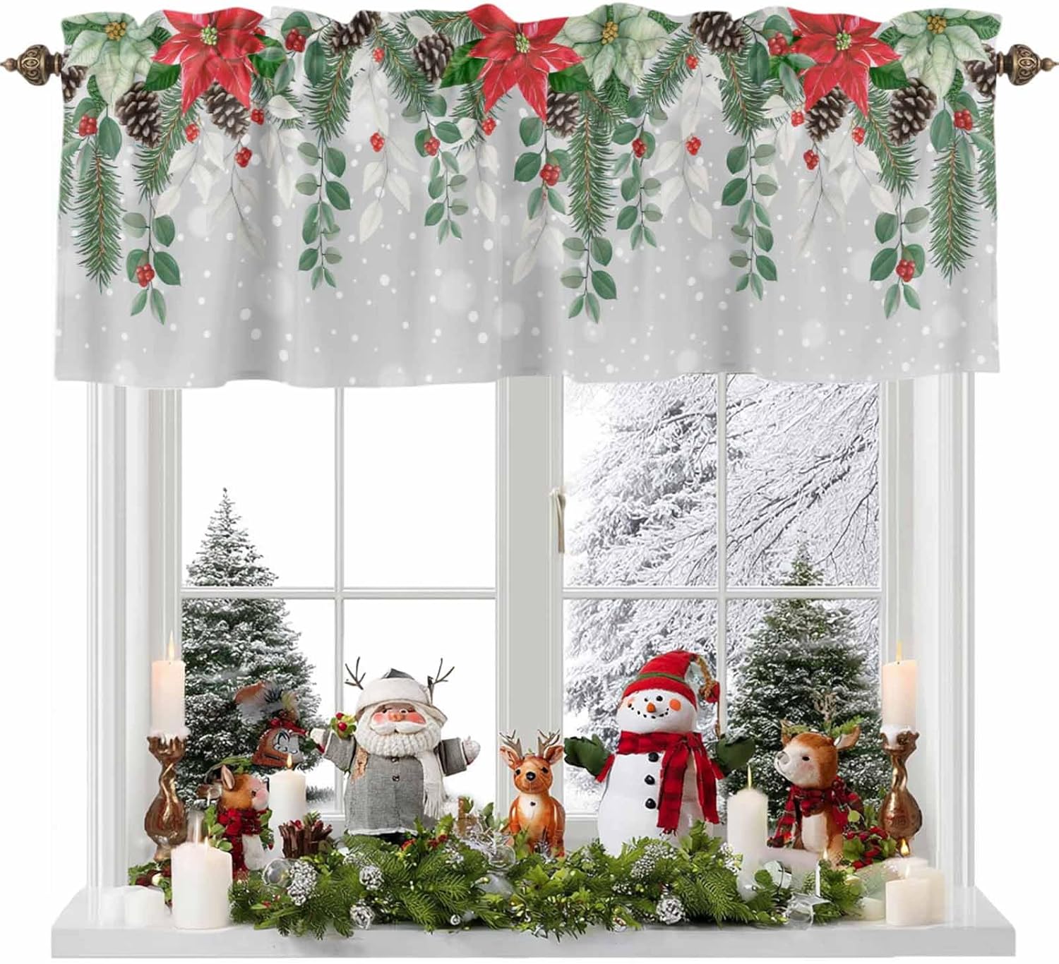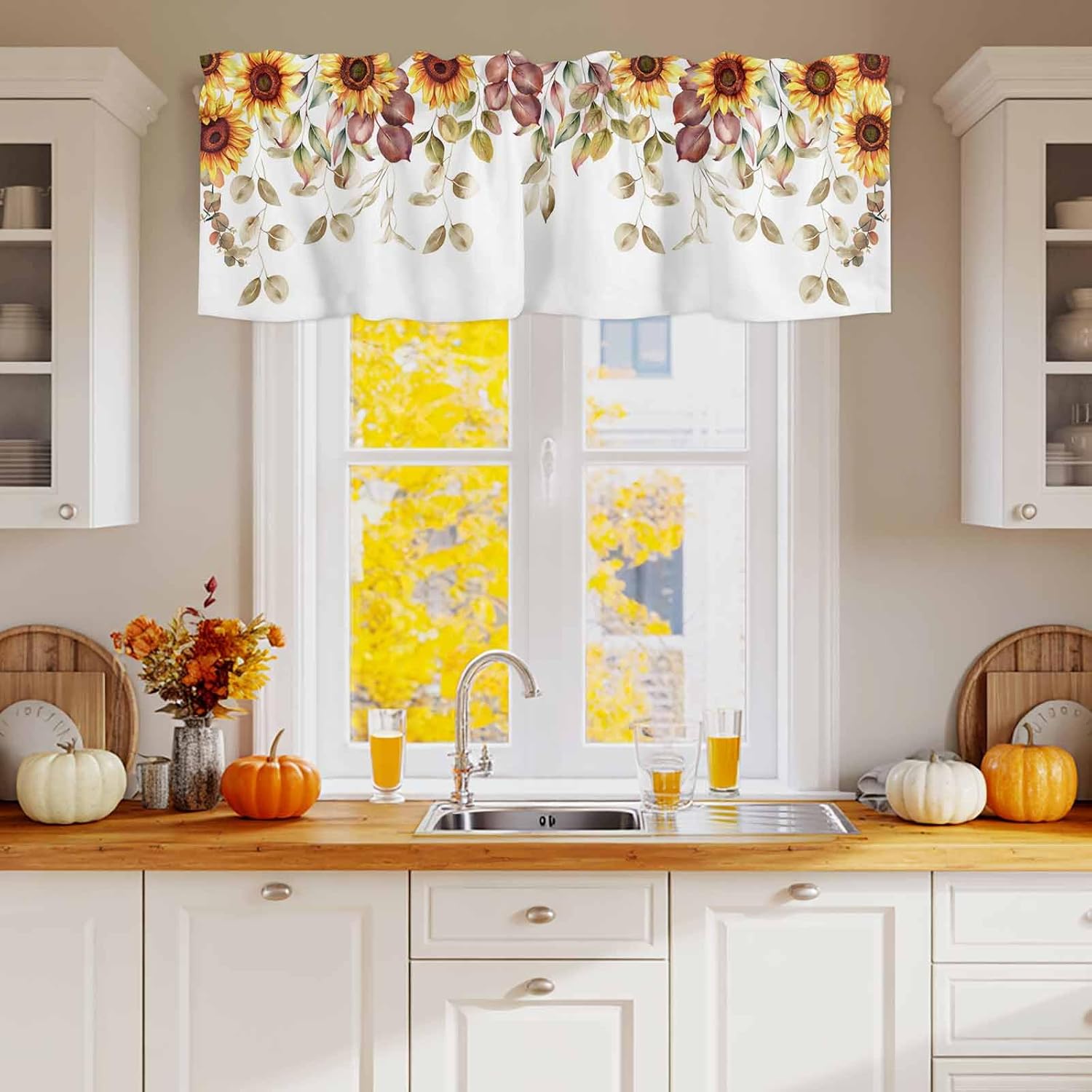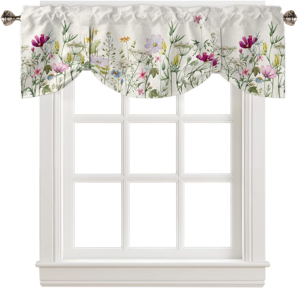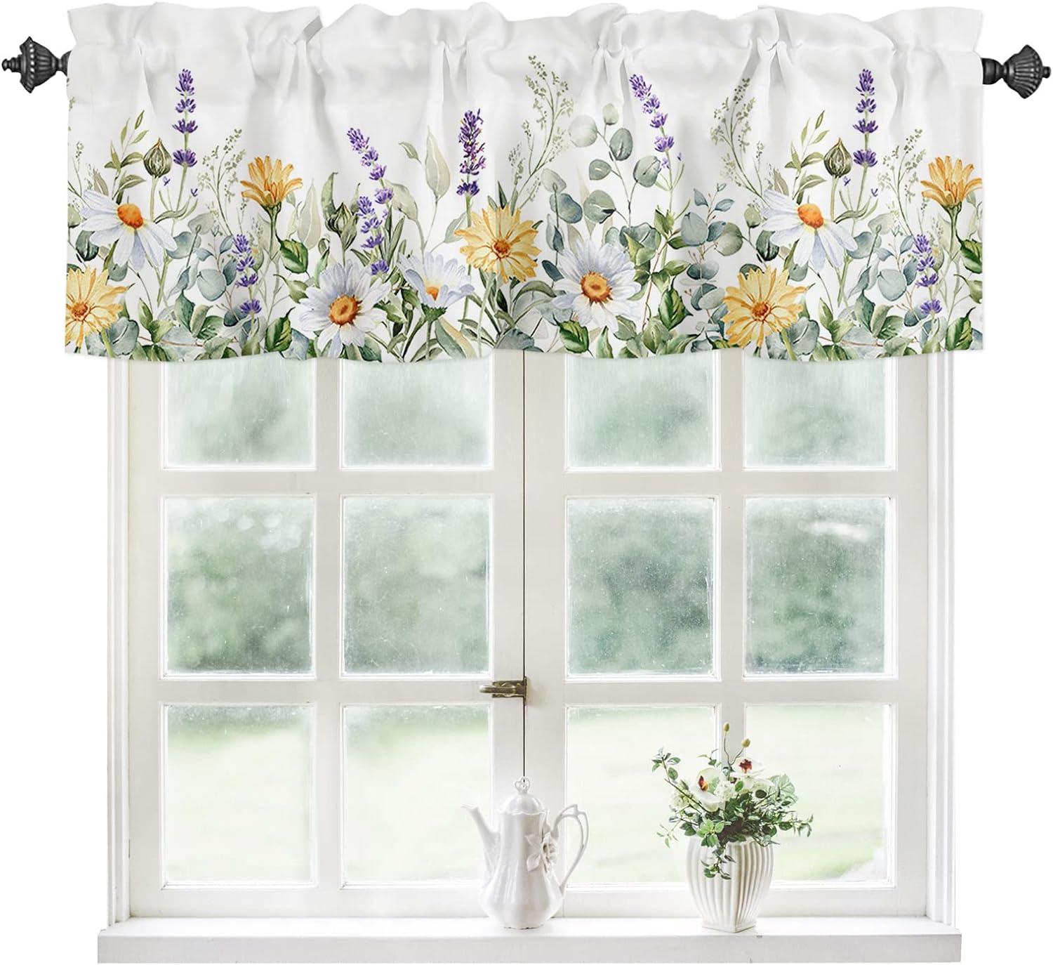 3 PCS CURTAIN SET 2 sizes are available: 🌸Valance Measurements: 54 Inch Wide by 18 Inch Length. 2 Tiers: Each Tier Measures 27.5 Inch Wide by 24 Inch Length. 🌸Valance Measurements: 54 Inch Wide by 18 Inch Length. 2 Tiers: Each Tier Measures 27.5 Inch Wide by 36 Inch Length. GOOD PRIVACY They will provide you the necessary privacy and allow just the right amount of light into your room. ROD POCKET The pocket holes are large enough for most rods in the market, easy installation and move. Premium quality printing ensures vibrant colors and long-lasting durability. GOOD PERFORMANCE Short and small curtains perfect addition to your kitchen, loft, laundry room, guest bathroom, farmhouse, living room, dining room,office, cafe,hotel or other public place, add a refreshing charm to your small window.