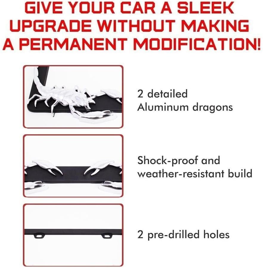 CHROME LICENSE PLATE: Our 3D Chrome scorpion License Plate Frame is a sure way to make your car, truck, or SUV stand out. With its eye-catching chrome design, this license plate frame brings a whole new sense of style and sophistication to your vehicle. The durable and high-quality aluminum construction of our Metal Look License Plate Frame ensures that it is built to last.