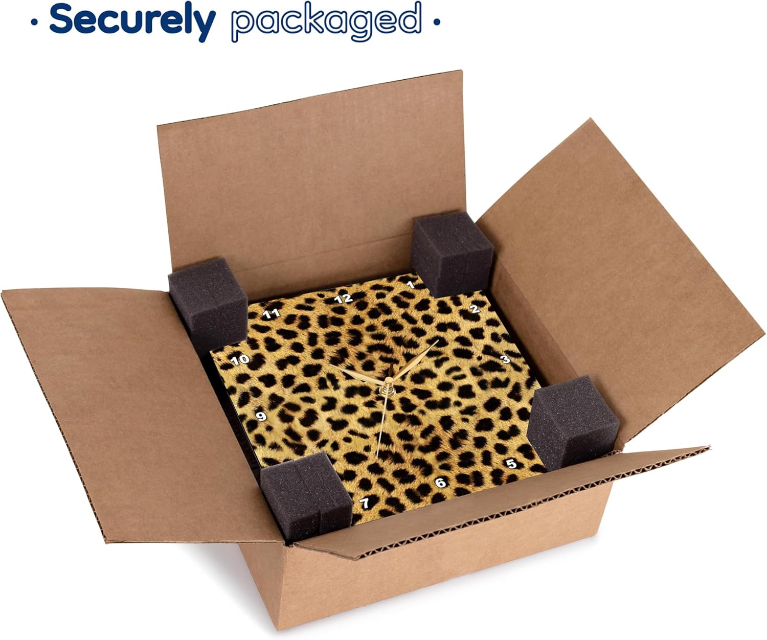 Cheetah Animal Print Wall Clock is a wonderful compliment to any room in your home or office. Made of durable high grade aluminum. This clock has a high gloss mirror like, UV coated, scratch resistant finish and is suitable for a moist environment. Available in multiple sizes, requires one AA battery; not included. Battery box is not covered.