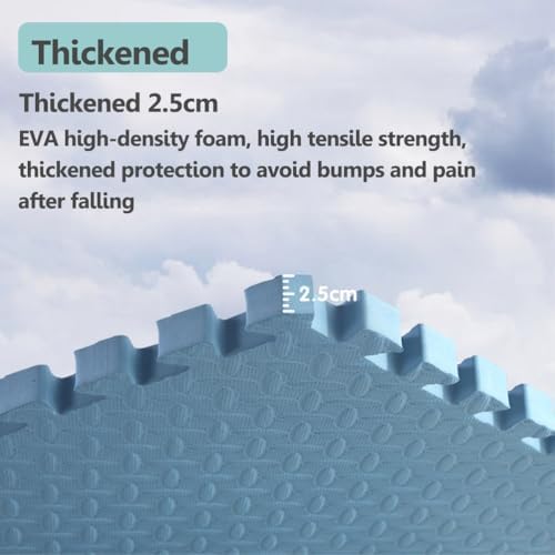 Transform your space with our versatile EVA foam floor mats, designed to enhance comfort and safety in various environments. Measuring 30x30 cm (12x12 in) with a thickness of 2.5 cm (1.0 inch), these mats are perfect for playrooms, yoga studios, dance classes, bedrooms, and living areas. Crafted from high-quality EVA foam, these interlocking mats provide a soft, cushioned surface that absorbs impact, making them ideal for children at play or for your fitness routines. Their washable surface ensures easy maintenance, allowing you to keep your space clean and hygienic without hassle. The flexibility of these mats means you can customize your layout effortlessly. They can be cut and spliced to fit any space or design, giving you the freedom to create the perfect environment for your needs. Whether you're setting up a cozy corner for your child to play safely or establishing a dedicated workout area, our EVA foam floor mats offer both functionality and style. With 40 interlocking mats included, you have ample coverage for any area. Please note that measurements are manual, and slight variations may occur due to monitor settings. Elevate your home or studio experience with our EVA foam floor mats and enjoy the blend of comfort, safety, and design that they bring to your space.