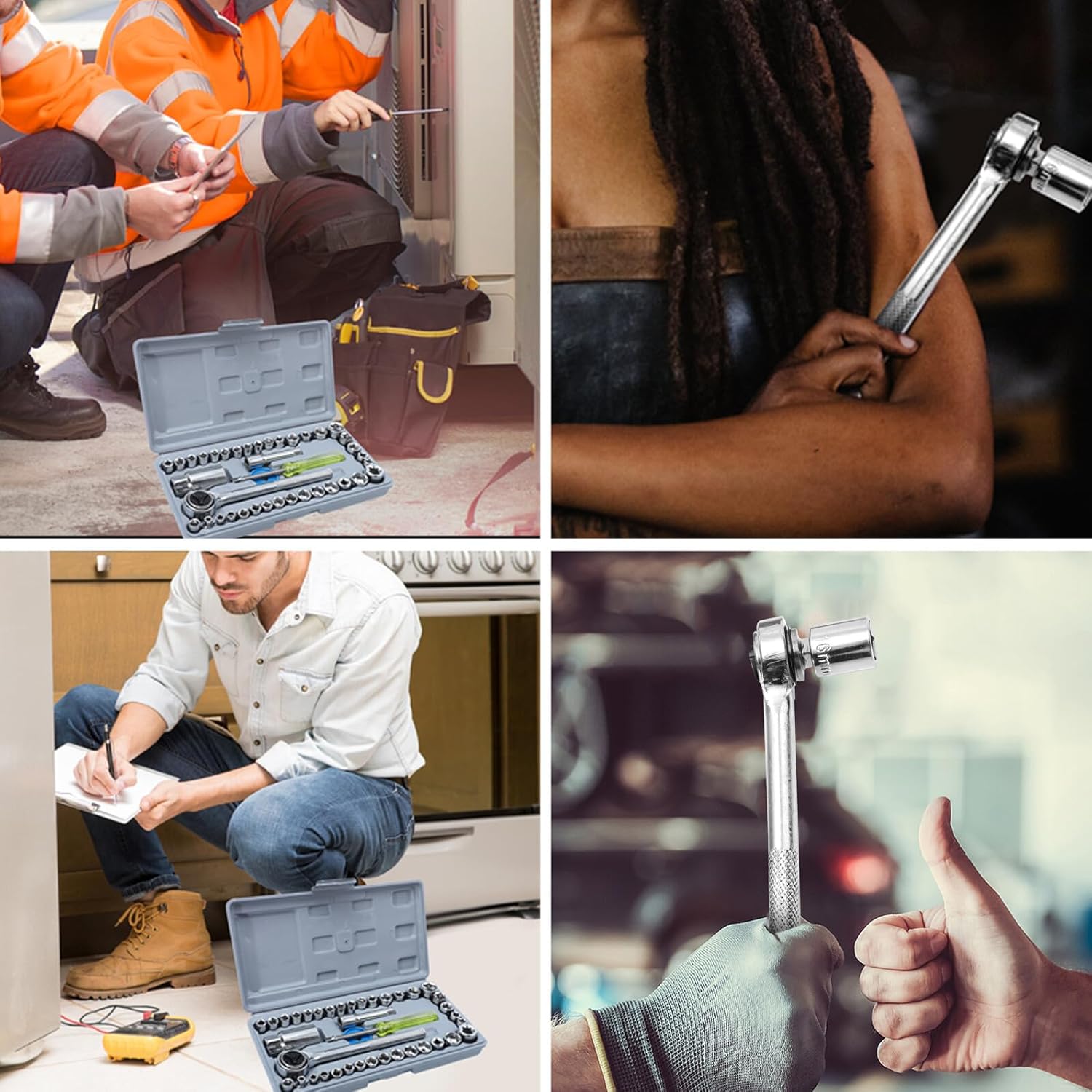 Package Include 34 x sockets 1 x ash bowl 2 x converters 2 x extension bars 1 x storage box Characteristics - Color: Assorted color. - Size: 24.00X12.50X3.70cm/9.43X4.91X1.45 inch. - Material: Carbon steel, plastic. -Product Info:Auto repair wrench kit - It has a reasonable design structure and simple operation method, allowing you to use it freely spanner wrench. - Efficient, durable, convenient and practical, suitable for disassembly and installation of most sleeves Wrench for Socket Use. - Made of sturdy and durable steel material, it will not be easily damaged or broken. - Fully equipped with replaceable sleeve to better meet your needs car repair wrench - It is mainly suitable for maintenance and fastening, which will bring you more convenience Repairing Tool.Goods Informationspanner Are you looking for a professional, practical and ratchet wrench? Our products will be your good choice.spanner wrench Made of craftsmanship and carbon steel materials, it has excellent durability and practicality, can better meet your maintenance needs, and will bring you a better experience