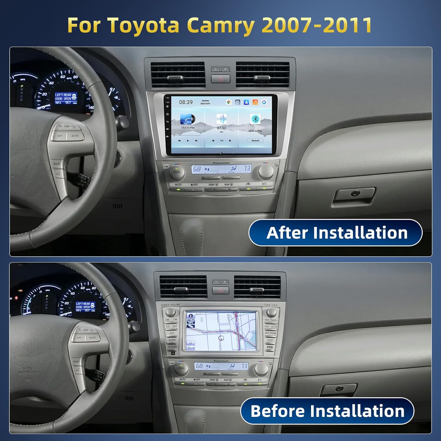 | Additional Features | Android 15 System, 8 Core, CarPlay, Android Auto, 6GHz WiFi Connection, Mirror Link, Bluetooth5.0, QLED Touchscreen, GPS Navigation, FM RDS Radio, DSP, Support DAB+ & OBD2, Support Reverse Input, Voice Control, Weather Forecast, Split Screen, Picture in Picture, 3D Car Dynamic Effects, SWC, 1280*720 Resolution |