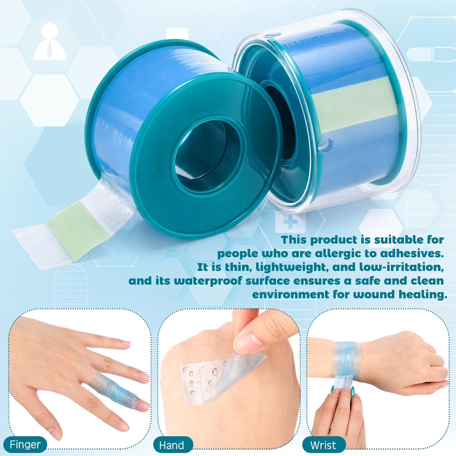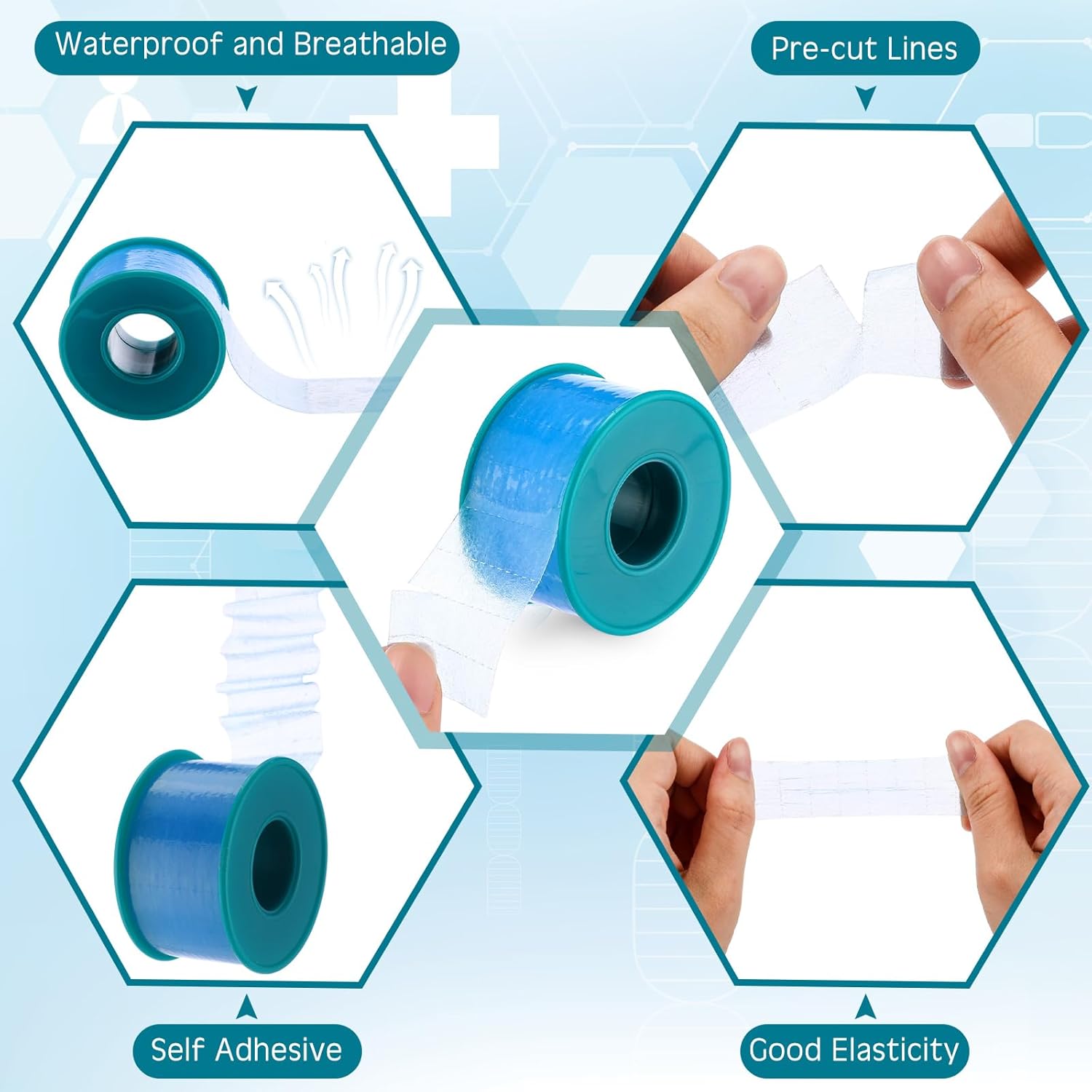 Features: Durable and long-lasting: enjoy peace of mind with our silicone tapes that stay firmly in place on your skin for extended periods, reducing the need for frequent replacements and saving you time and resources. Specifications: Material: silicone Color: blue Size: 2.5 cm x 4.5 M / 1 inch x 5 yards Package includes: 8 x Soft Silicone Tapes Notes: Manual measurement may have slight errors in size. Color may vary slightly due to different screen displays. Our products have strong adhesive, please do not stick them on the paper cabinet, paint cabinet, in case of damage to the furniture