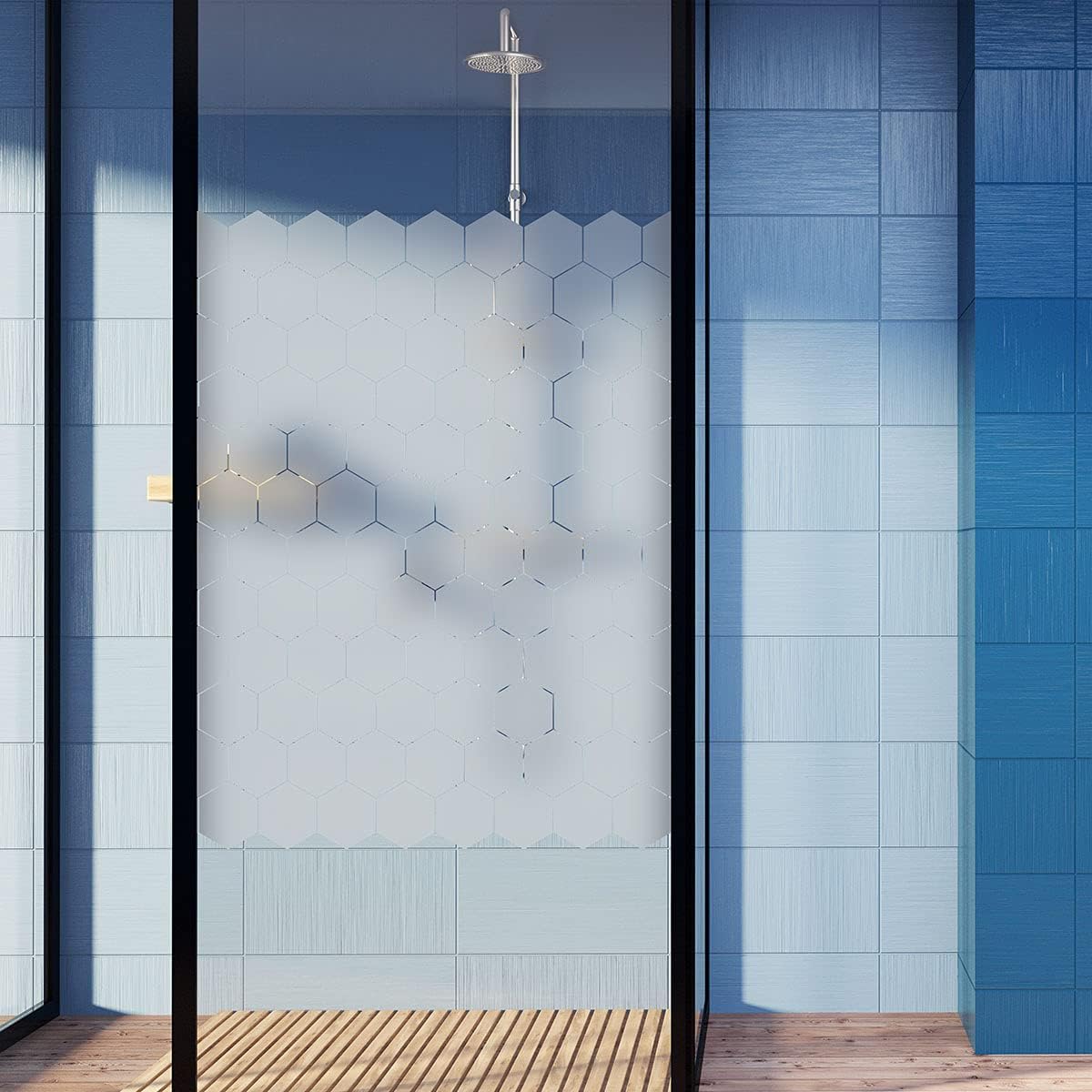 The hexagon blackout sticker for your bathroom and windows! The hexagon blackout stickers and this 50 hexagon blackout stickers for glass and shower door will give you decoration ideas! Sticker description: The size of this board of blackout hexagons stickers is H50 x L90 cm. This board consists of 50 hexagon stickers that measure H10 x L9 cm. Where to stick this decorative sticker? This hexagon blackout shower wall sticker is perfect for your shower room door! This blackout shower wall adhesive will allow you to make the atmosphere of your bathroom more design and attractive. The hexagon window blackout adhesive also allows you to preserve your privacy when you are inside your home. The hexagon blackout sticker is ideal placed on a bay window to hide the opposite in your office! The hexagon blackout stickers fit easily into any interior. Descriptions of the hexagon blackout sticker: Material: Crystal satin sandblasted vinyl (special for shower door and glass) The tips to put your hexagon blackout sticker. 1. Moisten the window 2. Peel off the backing paper 3. Place the sticker on the window (moisture allows adjustments) 4. Allow to dry 5. Remove Transfer Film