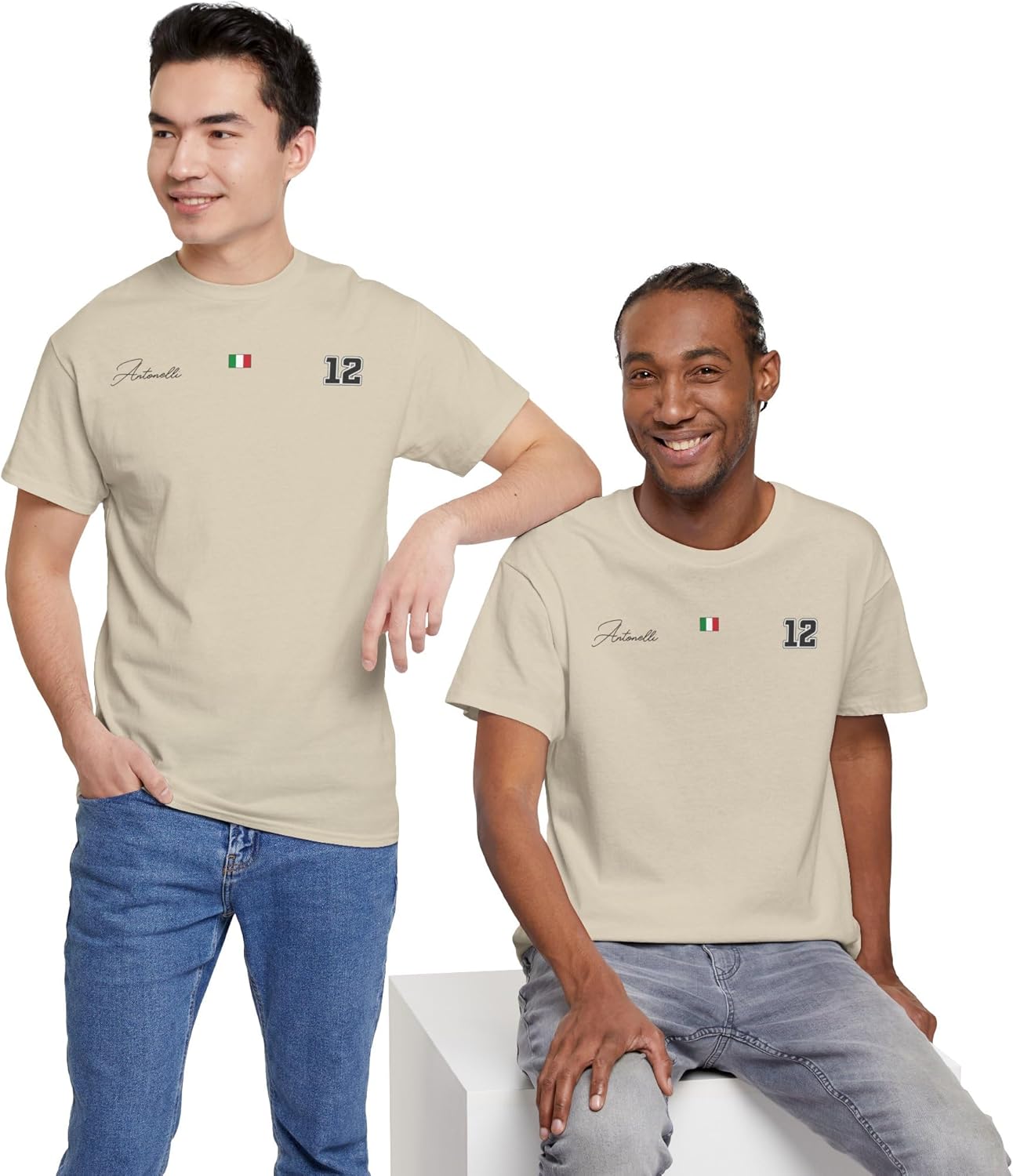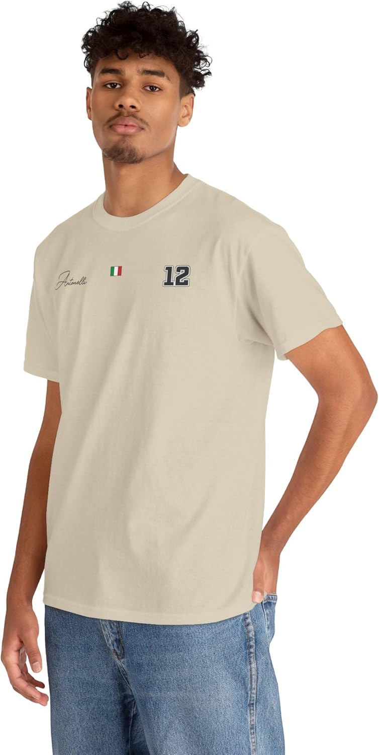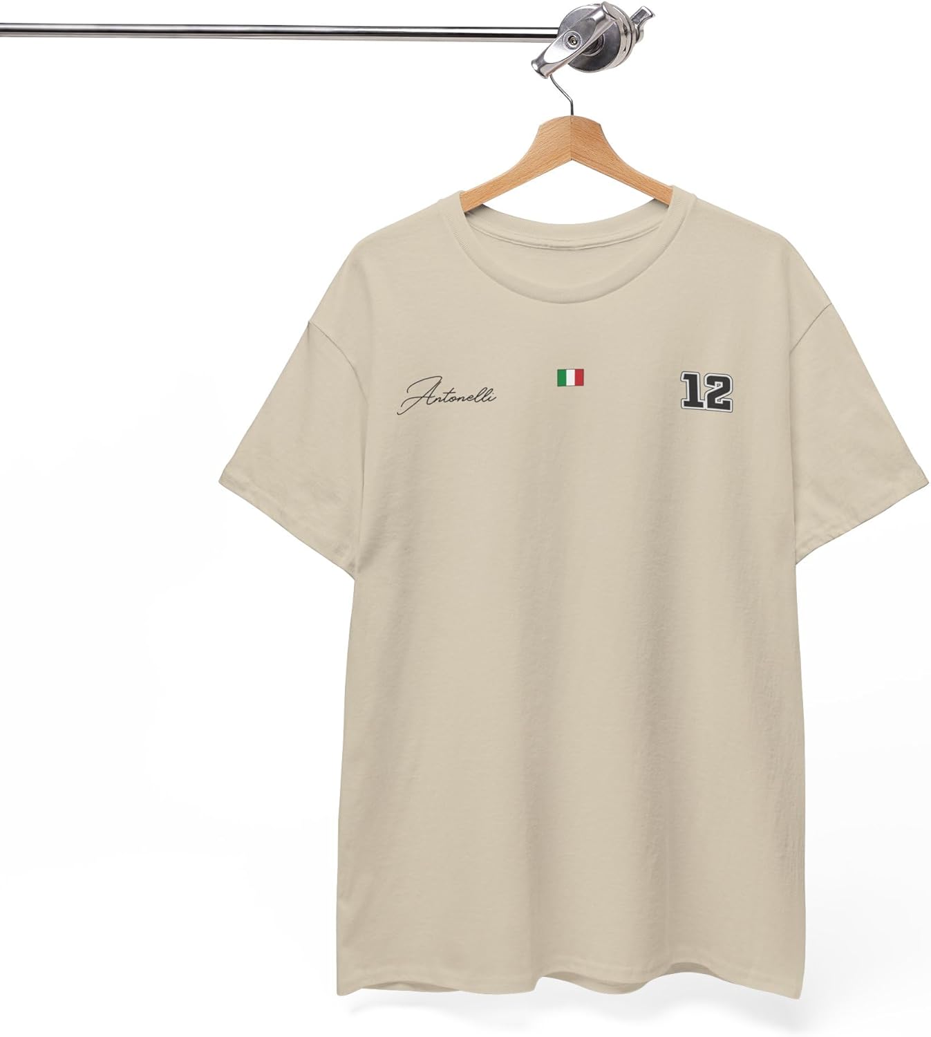Fuel your racing wardrobe with the Inspired Antonelli T-Shirt—an essential for motorsport fans who live for speed and Italian flair. Designed with a clean, race-inspired aesthetic, this unisex tee blends comfort and style through its heavyweight cotton build and seamless fit. The fabric is engineered for vivid printing, making every detail pop, while features like a ribbed collar and reinforced shoulders ensure long-lasting wear. Whether you're trackside or street-styling, this tee keeps your passion on full display. Produced on demand and shipped with care—grab yours and gear up like a true racing enthusiast!
