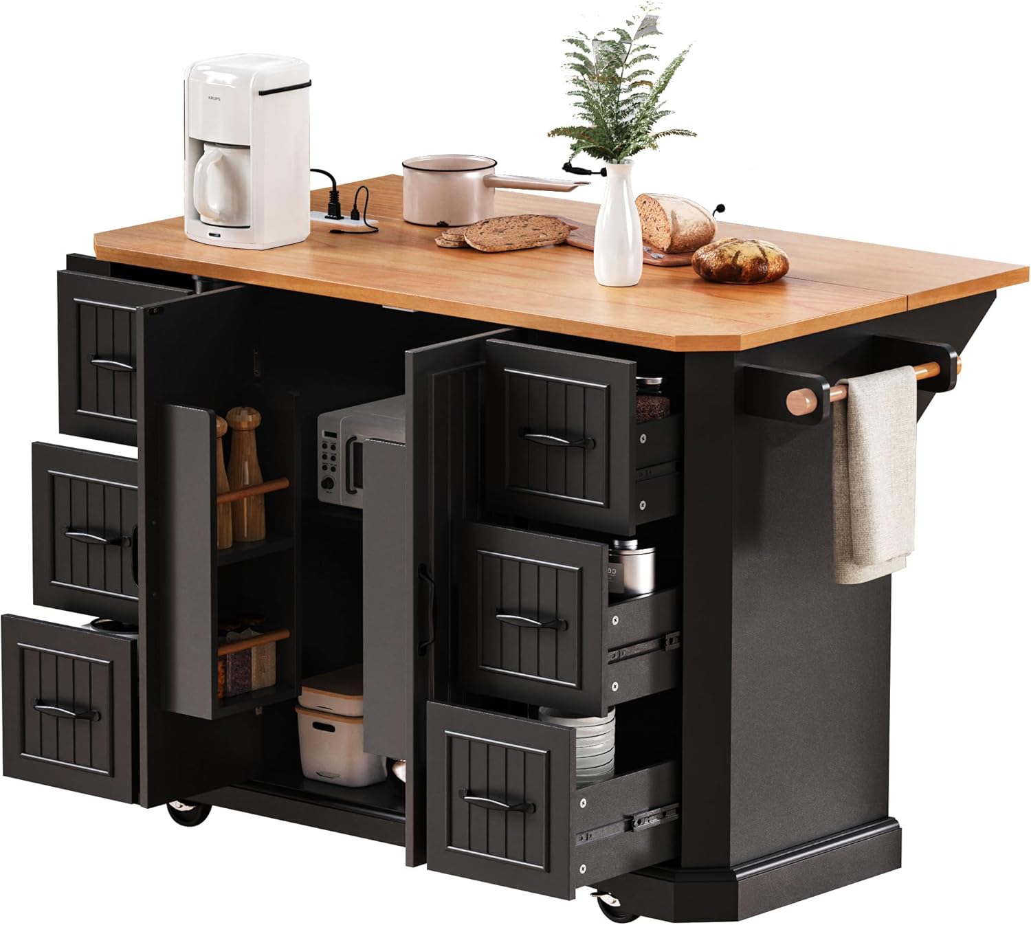 | Item Type Name | Ball & Cast 56" Large Kitchen Island with Drop Leaf and Power Outlet,Rolling Kitchen Cart on 4 Wheels W/ 6 Drawers,Folding Storage Dining Table W/ Spice & Towel Rack,for Kitchen,Dining Room,Black |