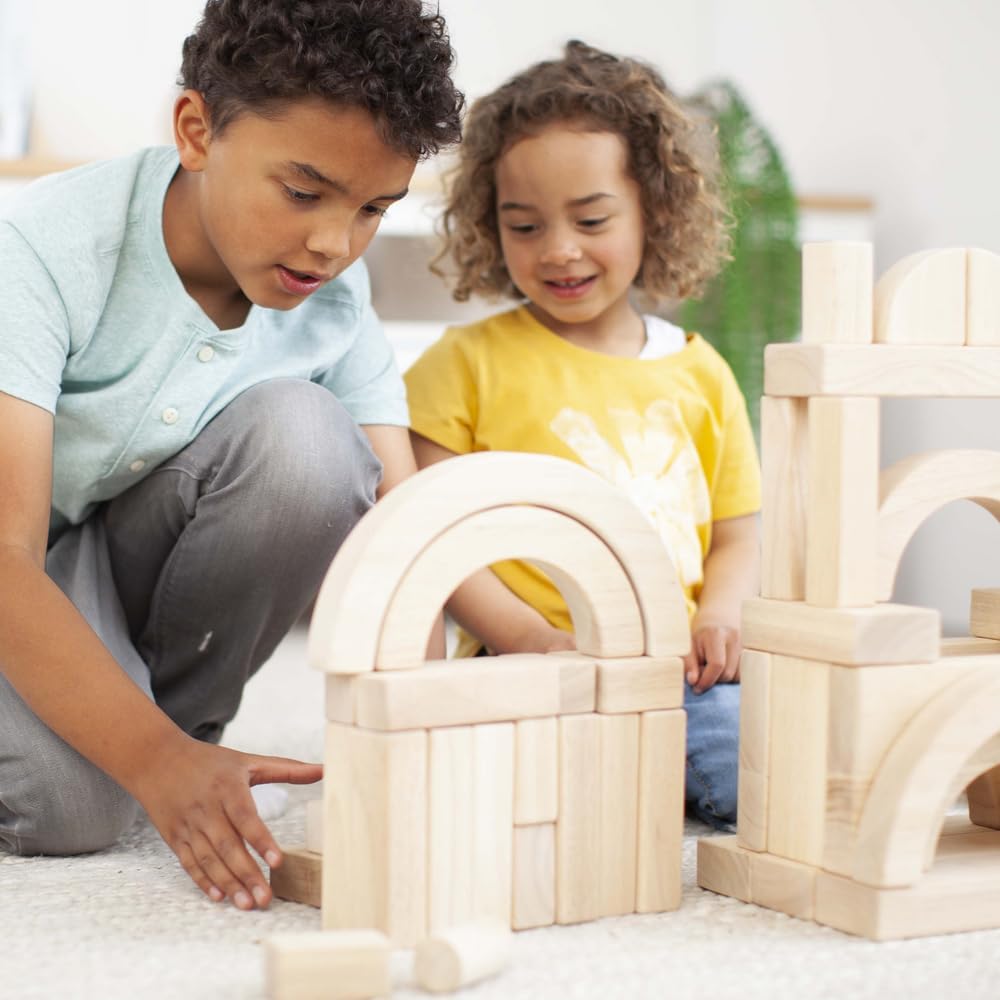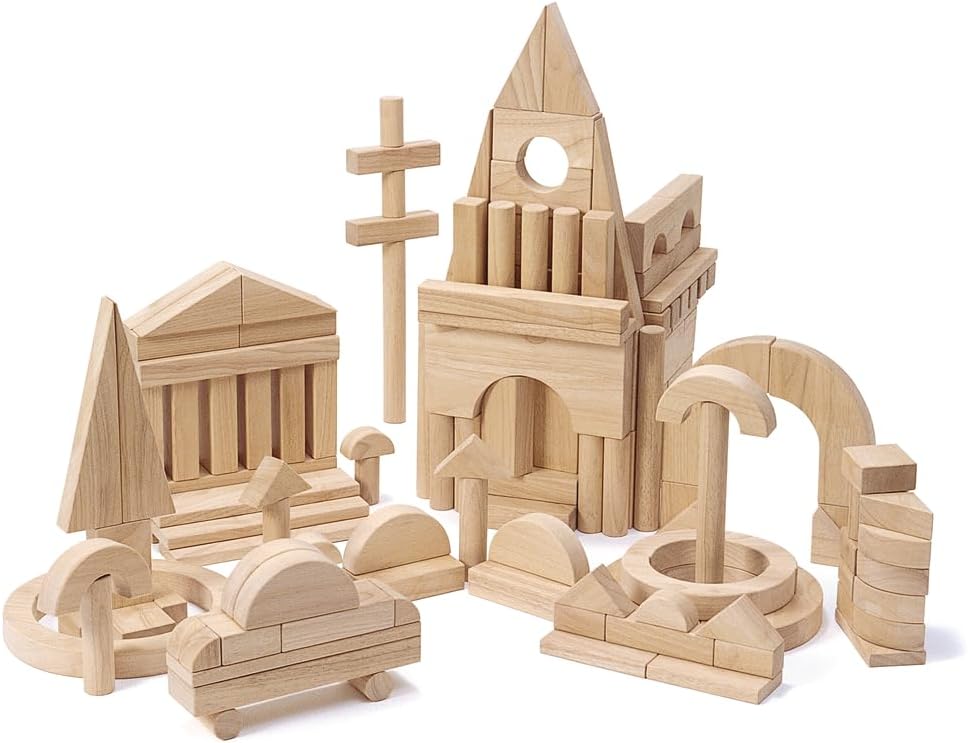 Solid rubberwood unit building blocks encourage problem solving, enhance social and perception skills, promote shape and size recognition. Block play can teach basic math and science skills as well as STEM engineering principles. (EDUCATIONAL: Perfect for teaching sorting, counting and patterning. Block play can teach basic math and science skills as well as STEM engineering principles and spatial relationships.; BUILDING BLOCKS FOR KIDS: 162 solid rubberwood building blocks are natural-finished and smooth-sanded.; MULTIPLE DEVELOPMENTAL BENEFITS: Our blocks for imaginative play are ideal for introducing early math concepts, including shapes, parts-to-whole, and sorting. They also help to develop hand-eye coordination and teach patience.; BASED ON UNIT MEASUREMENT: All blocks are based on a unit measurement of 1-1/4 inches.; GREAT GIFT FOR KIDS AGES 3 YEARS AND UP: Wooden toy blocks make a great gift for kids ages 3 and up.) - Discount School Supply Item # 162B