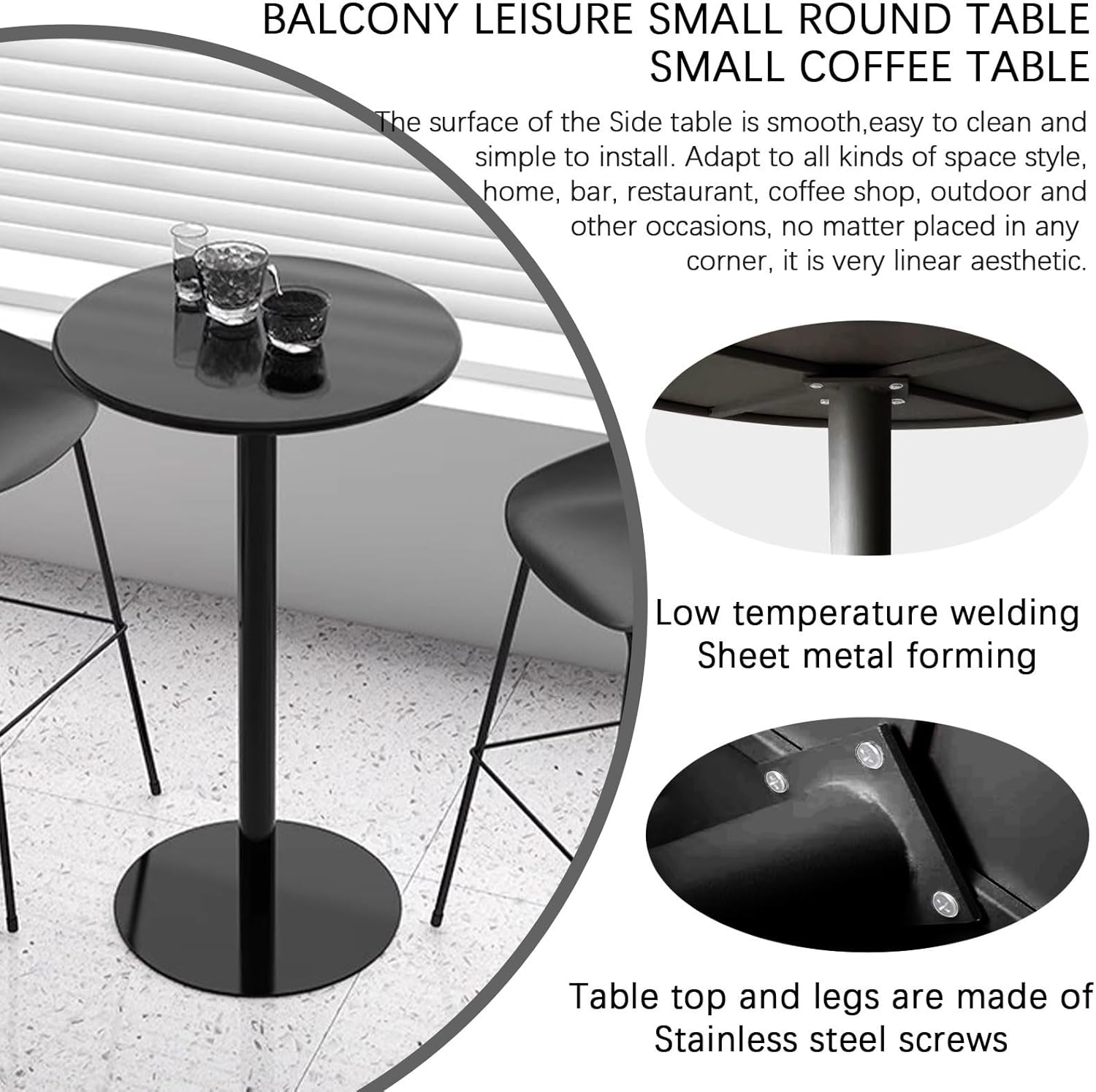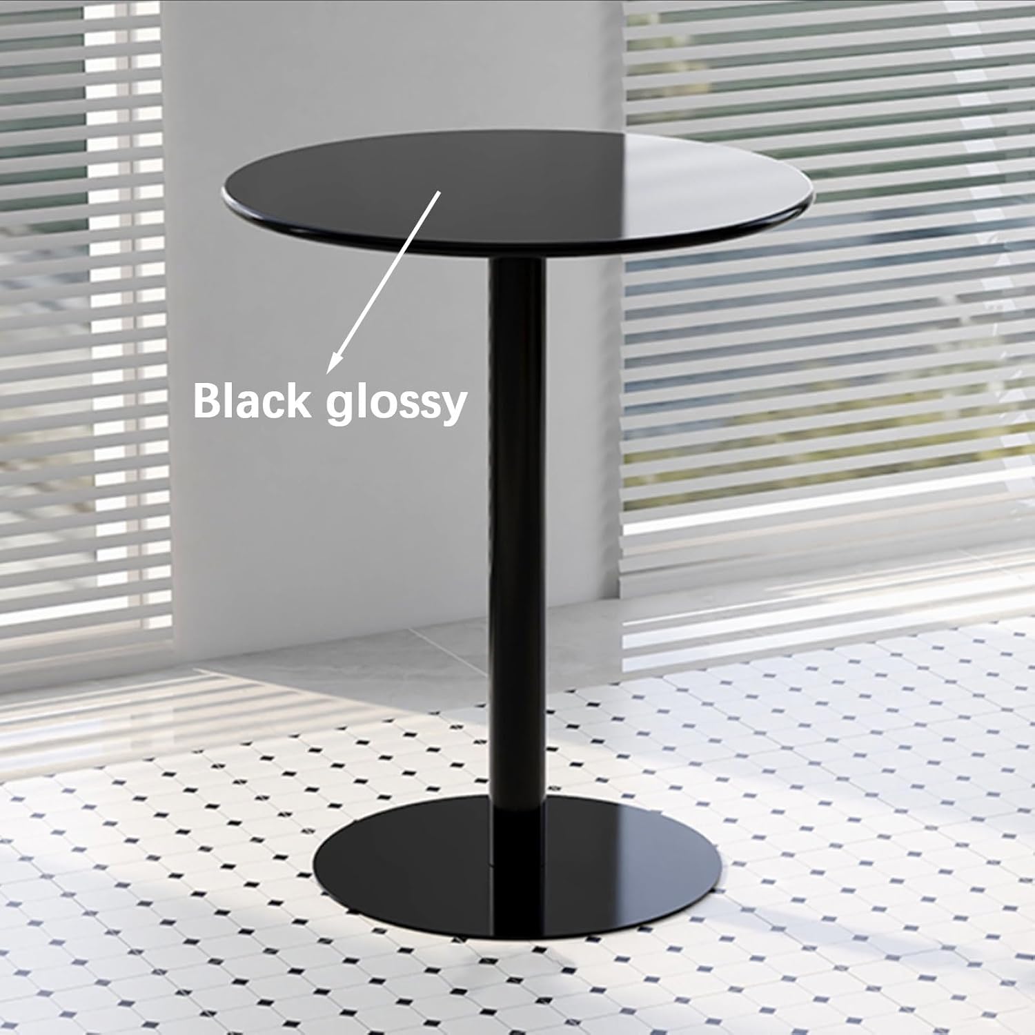 The modern casual bar high table is suitable for milk tea shops,coffee shops,light food shops,bakeries,outdoor leisure areas,simple western-style small restaurants,and small Nordic spaces.Beautiful home decor in the palm of your hand.SpecificationsMaterial: metal wrought ironTable color: Black glossy (If you would like a bar table in Black matte, you can contact us via email at)Shape: Round- For customised table sizes or if you require a white glossy/white matte, you can contact us via email. We will get back to you within 12 hours.Package content1 x Tall Bistro Pub Table (stools and decorations not included)1 x Assembly kit
