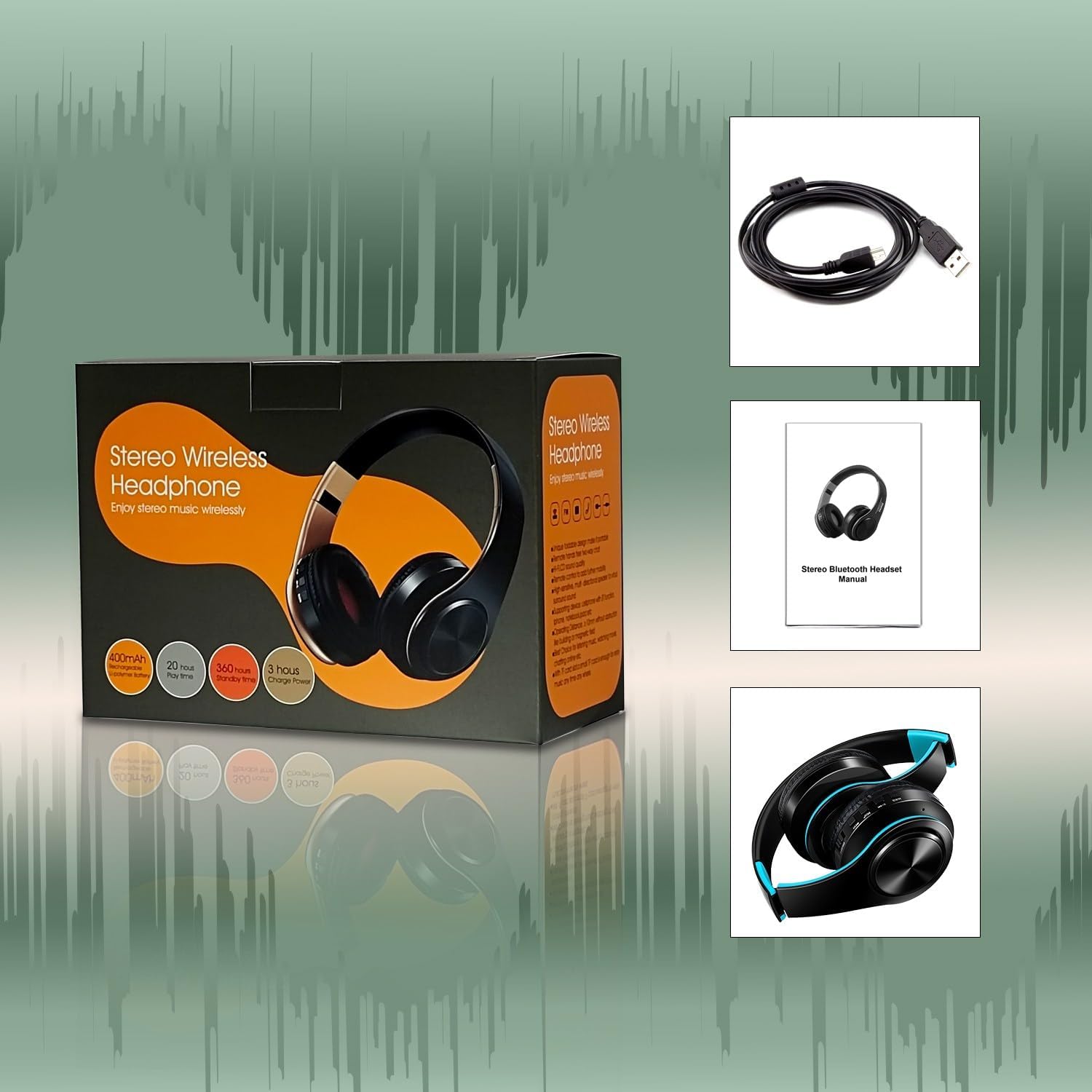 1)Bluetooth V5.0 version + MP3 function+ FM radio+ Wired playing support stereo music playing, phone calling...2) Support all audio devices that have Bluetooth capability, such as, cell phone ,tablet PC,laptop,computer etc. 3) 3.5mm audio jack, provides a simple wired connection of a variety of devices without Bluetooth. 4) Allow you to answer or reject phone calls anytime and anywhere. 5) Charged via USB, rechargeable battery, convenient and practical. 6) Playing time up to 20 hours, standby time up to 360 hours. 7) Good quality, foldable design and adjustable length hinges, very comfortable to wear and easy to carry. 8) Best choice for listening music, watching movie, chatting online etc. 9)With SD card insert,without any bluetooth device,can still enjoy music any time any where. 10)Cool shinnging outlook adds the fashionable feel.