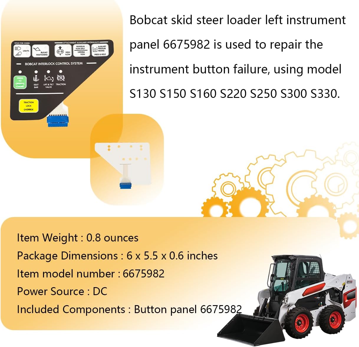 Bobcat skid steer loader left instrument panel 6675982 is used to repair the instrument button failure, using model S130 S50 S160 S220 S250 S300 S330