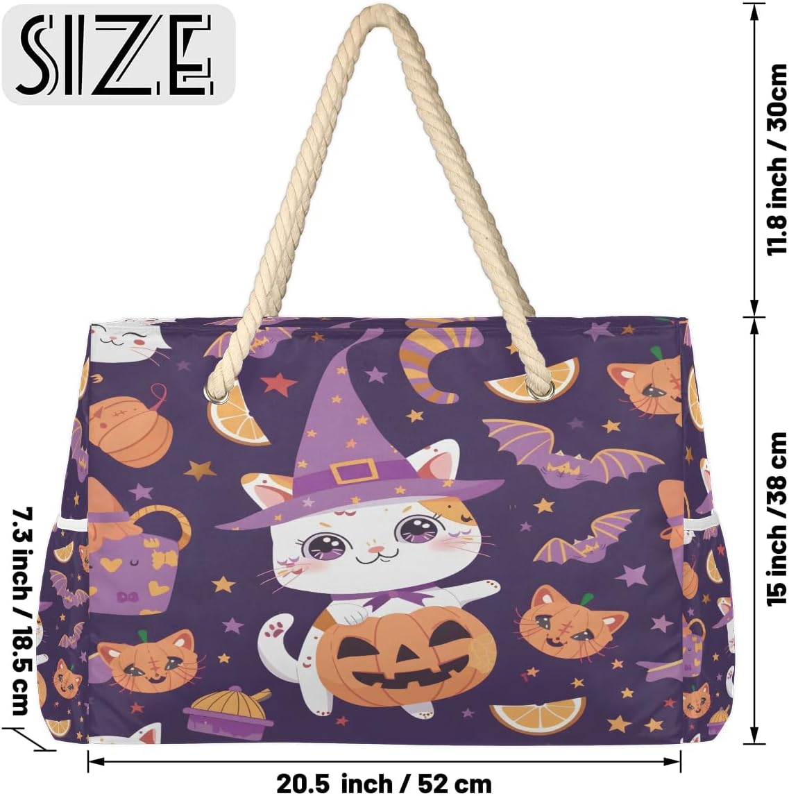 Name: Beach Tote BagProduct Size: 20.5*7.3*15 inchesProduct Features:1-Crafted from durable, washable, waterproof polyester fabric, this waterproof and sandproof beach bag has a sturdy and comfortable knotted rope carry handle, a double zipper closure design, and is lightweight and collapsible is a very practical summer pool bag.2-Women's large beach tote bag measures 20.5x7.3x15 inches. Travel duffel bag with large main pocket has enough space to safely store your beach towel, clothes, makeup, flip flops, sunscreen and other essentials; 2 side outside insert pockets for water bottles, flip flops, sunglasses and other items. Inside the main pocket, there is a clear PVC zipper pocket on one side to protect your valuables from getting wet or damaged, and 2 mesh pockets on the other side to categorize some small items.3-Reusable grocery shoulder bag can be used as a beach bag, pool bag, gym sports bag, travel duffel bag, weekend getaway bag, summer bag, overnight bag, flight carry-on bag, perfect for camping, sports activities, yoga, fishing, cycling and more.Washing Instructions:Hand wash only. Not machine washable. Take a damp cloth or sponge and wipe the stained area. If there are more obvious stains, use a little soap and water to remove the stains, taking care to clean the soap well. Dry naturally after washing.Ideal Gift: A fashionable design good looking reusable gift bag is suitable for all kinds of festivals, bridal shower, birthday gift, Halloween, Thanksgiving, Christmas, Valentine's Day, New Year's Day, birthday, Easter.Premium Service:We are committed to providing you with a satisfying shopping experience. If you have any questions or comments, please feel free to contact us. We will reply within 24 hours and try our best to solve the problem for you and provide excellent after-sales service. Let you also feel our sincerity.