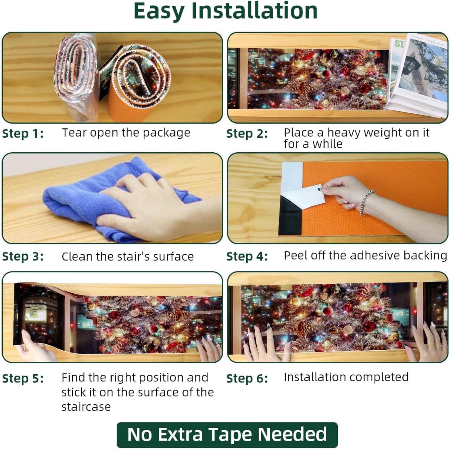 ・Size: 30 x 8 in / 76 x 20 cm, 5 mm thickness. ・Material: The polyester surface absorbs water, preventing stains on the floor. The TPE back is non-slip and water-resistant, preventing damage to the stairs. ・Package Contains: 15 pieces of 30x8in (about 76x20cm) stair mats, 5mm thick. Suitable for most needs. Each stairway treads rugs is individually wrapped. ・Easy to Clean: Vacuum, hand wash or machine wash. The stair runners for wooden steps can be machine washed, preferably hand washed, or vacuumed. Do not use bleach or tumble dry at high temperatures, drying at appropriate low temperatures will give you a comfortable texture. ・Noise Reduction of Stair Treads: By adding our stair runner, not only can you protect your floors, but you can also significantly diminish the noise caused by walking up and down the stairs. Stair rugs can decorate your stairs, create a warm home atmosphere, you can enjoy a peaceful and quiet home environment without disturbances. ・Easy to Remove Adhesive Backing: When you want to replace the stair treads non slip, the adhesive backing easily removes without leaving residue on the steps. ・Holiday Design: Stair carpet treads are designed specifically for Christmas,Halloween, Thanksgiving Day features classic festival elements and vivid printing styles,creating beautiful and stunning visual effects for you. This holiday themed stair treads can easily help you add a strong festive atmosphere, bringing charming and exquisite holiday decorations.