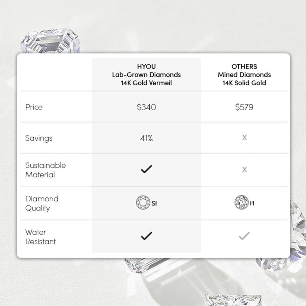Every sparkle tells a story - of mindful choices, effortless beauty, and everyday confidence. The HYOU Two-Layered Stackable diamond engagement rings for women embody that story, blending luxury and conscience in one timeless, radiant piece. Crafted in 14K gold vermeil over 925 sterling silver, it combines the warmth of gold with the strength of silver. Our vermeil rings are not just gold gold plated rings - they have a premium, thicker layer of genuine gold bonded over sterling silver, ensuring long-lasting shine and durability. The result? A radiant, fine-finish women rings that feels rich yet remains accessible. HYOU understands that true beauty should never come at the cost of comfort. This silver wedding band women is designed for all-day wear, offering ease, confidence, and brilliance you can rely on. With a 5-year warranty, each piece is built to accompany you through countless days and occasions, maintaining its sheen with minimal upkeep. At its heart lies the star of the show - a lab grown diamond that mirrors the allure and sparkle of mined diamonds, minus the environmental impact. Whether you call it a wedding ring, eternity band, or promise ring, the message is the same - conscious luxury can be breathtakingly beautiful. Packaged in an elegant jewelry gift box, it’s a ready-to-gift treasure for birthdays, anniversaries, engagements, or everyday celebrations. Smartly priced and beautifully made, these gold wedding bands for women make it easy to build your gold & silver jewelry collection with meaningful pieces that reflect your individuality. At HYOU, we believe jewelry should tell stories - not just of sparkle, but of smart choices, and attainable luxury. Choose HYOU - where modern craftsmanship meets mindful elegance, and every diamond tells your story with brilliance that lasts.