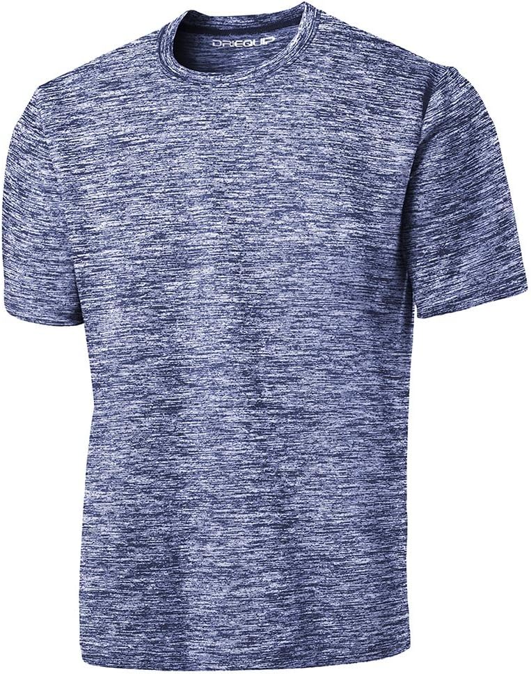 DRI-EQUIP Electric Heather Moisture Wicking T-Shirt Printed with DRI-EQUIP Logo Inside. Our color-locking tee has a soft hand, wicks moisture, resists snags and is energized with an allover heather pattern. Quick dry moisture management fabric is specially constructed to allow full range of motion while keeping you dry and comfortable. Our lightweight Tee has a roomy athletic cut and controls sweat . With a Performance loose fit DRI-EQUIP is great for sports, training, cross fit, running or wearing around the house.