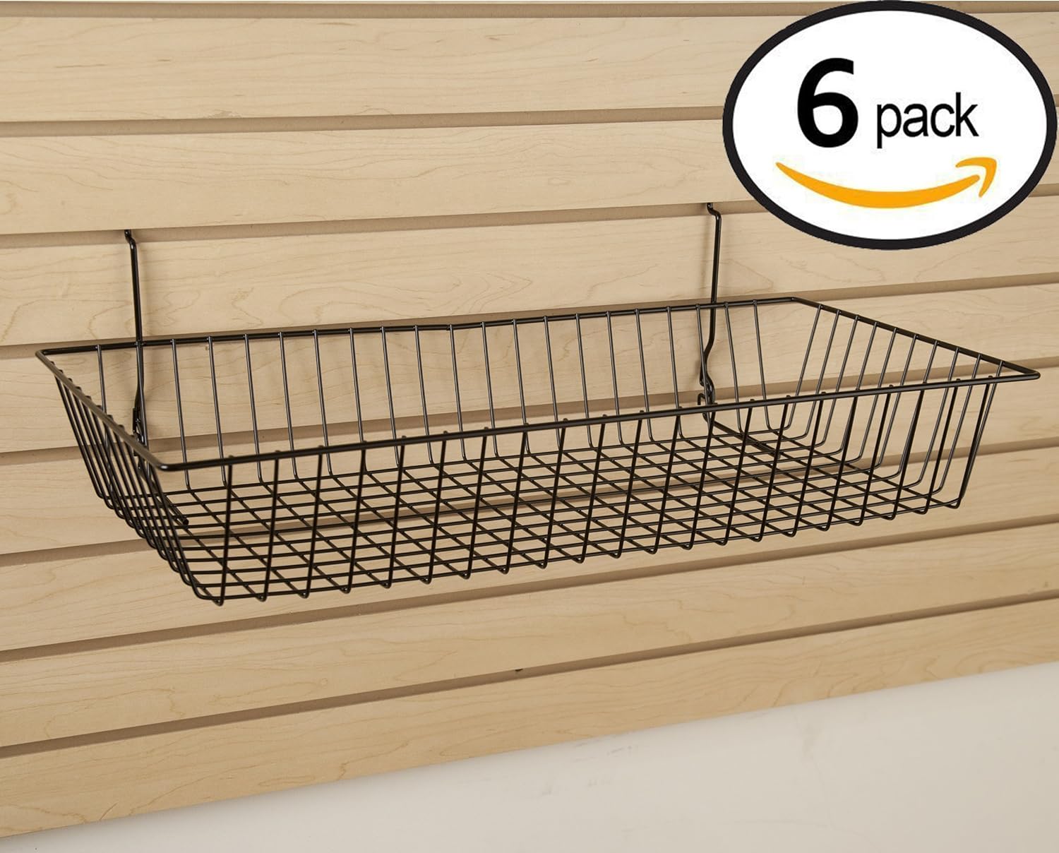 Econoco’s Black Multi-fit double sloping basket for slatwall, grid or pegboard is the perfect addition to your retail store! Maximize display power and organize light-to-medium weight merchandise with this attractive Black Multi-Fit Double Sloping Basket for Slatwall, Grid or Pegboard. It’s comprised of 1/8" thick wire and container slopes forward for more visual appeal. No brackets needed for effortless installation. Comes in a 6 pack of Black double sloping wired slatwall baskets. Rectangle shape, tapered design offers an attractive option for storage. 24” commercial display.