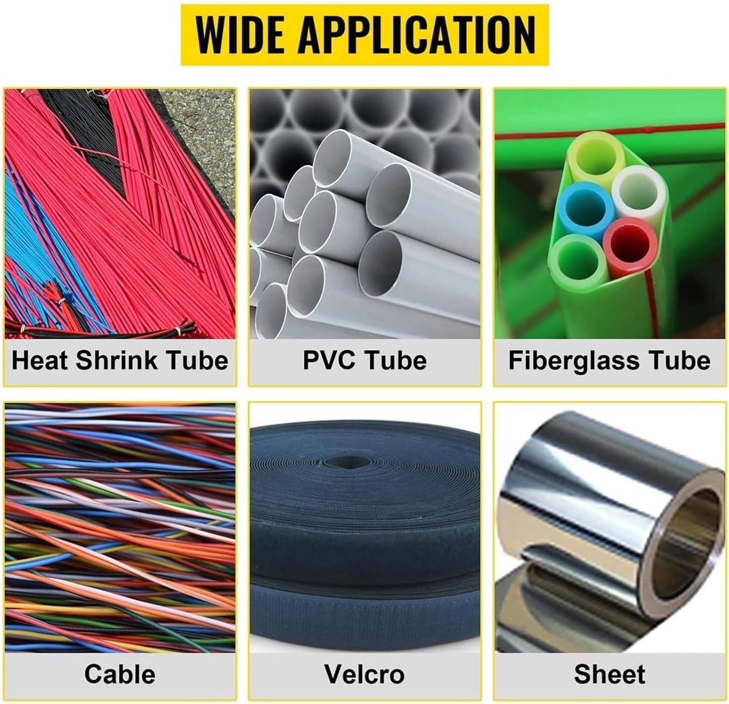The fully automatic heat-shrink tube cutter offers efficient and precise cutting of up to 3 tapes at once, with a cutting length of 0.1-9999.9 mm and cutting width of 4"/100 mm. It features a powerful 300 W motor for a cutting speed of 100-120 cut/min and a CNC control panel for setting length, quantity, and speed. Made of stainless steel, for electronics, clothing, automotive, and more industries.Advantages:Feeding speed is high, the precision of machine could reach 0.1mm under computer program controlLength and speed can be arbitrarily and continuously adjustableAutomatic grouping and total countingBatch suspension and delay time can be setCutting all kinds of tubes strip materials automaticallyLCD screen display and operations is simple and convenientWith special mechanical structure, special cutting tools, and special software control, completely solve the problem of uneven cuttingSpecifications:Cutting Material: High-Speed SteelPower: 300WCutting Length: 0.1mm-9,999.9mmCutting Width: 0-100mmCutting Speed: 100-120 cut/min(50mm)Item Dimension: 400×350×390mm(15.7×13.8×15.4in)Net Weight: 28kg(62lbs)Package List:1× Complete Kit of Tube Cutting Machine1× User Manual