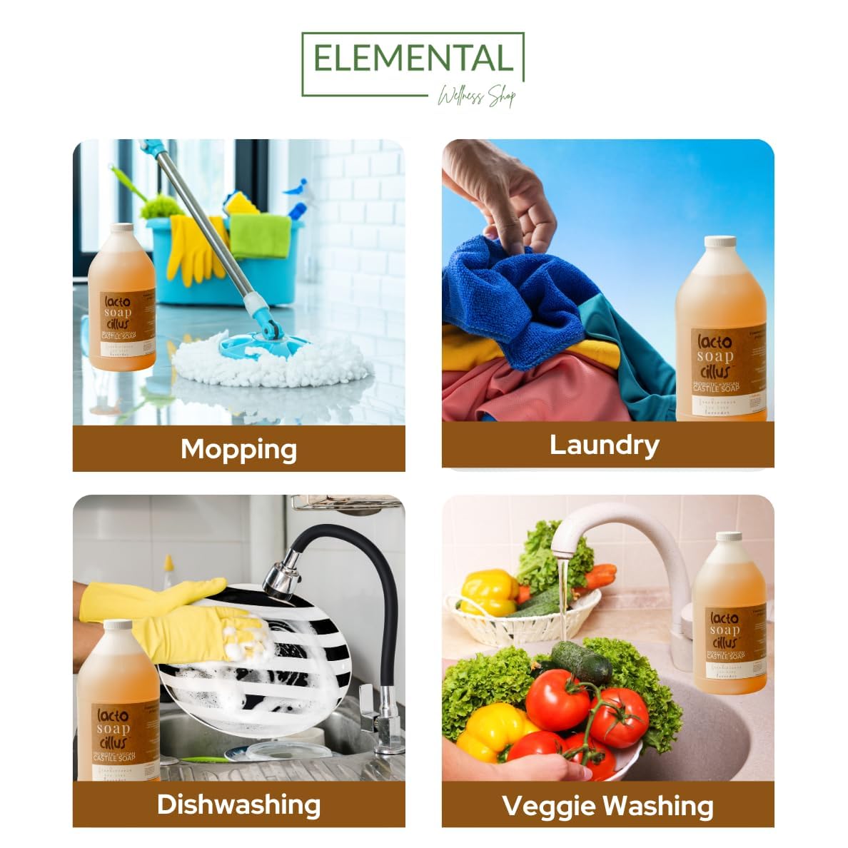 | Included Components | 1 Bottle of Elemental Wellness Castile Soap Liquid (16 oz) |