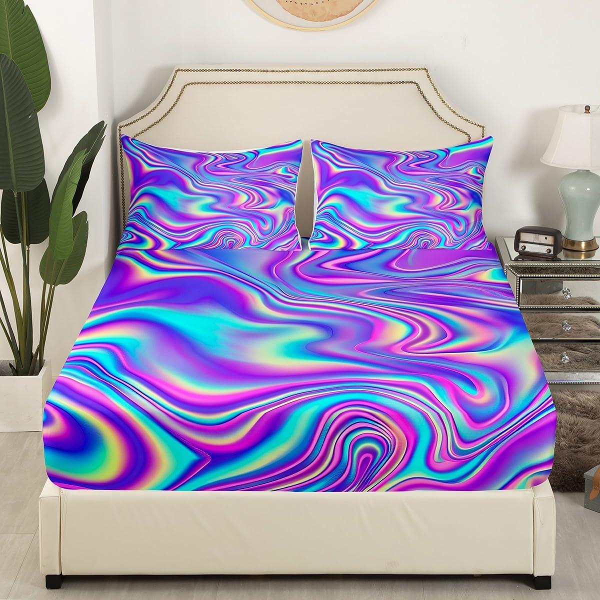 We Have Been Listening to The Opinions of Our Customers From The Reviews,So We Developed a New Bed Sheet Set and Added Flat top Sheets to Meet The Needs of More People.Our Bedroom Decor Bed Sheets Set Look with The Vivid Stylish and Elegant Print Bedding Set. Size Information Twin Size Includes: 1 Pillowcase(20”x30”) and 1 Fitted Sheet(39”x75”x16") and 1 Flat Sheet 96x66" Full Size Includes: 2 Pillowcases(20”x30”) and 1 Fitted Sheet(54”x75”x16") and 1 Flat Sheet 96x81" Queen Size Includes: 2 Pillowcases(20”x30”) and 1 Fitted Sheet(60”x80”x16") and 1 Flat Sheet 102x90" King Size Includes: 2 Pillowcases(20”x35”) and 1 Fitted Sheet(78”x80”x16") and 1 Flat Sheet 106x90" Materials: Luxuriously Brushed Microfiber Fabric Fabric and Design: Silky Soft Brushed Microfiber Cotton Feel Material Bed Set Bedding Set Fashion forward Inspired 3D Print Patterned Technique Flat Fitted Sheet Top Sheet Features: Luxuriously Soft Feel for a Great Night Sleep with Less tossing and Turning Just The Right Fill to Keep You Warm In The Winter and Comfortable In The Summer Built to Last with Premium Fabrics and Expert Stitching Care Instructions Dry Clean Preferred.Machine Washable,Use Front Loader Machine(Or top Loader without Agitator)to Avoid Tearing,Use Cold Water on Gentle Cycle,Tumble Dry Low.