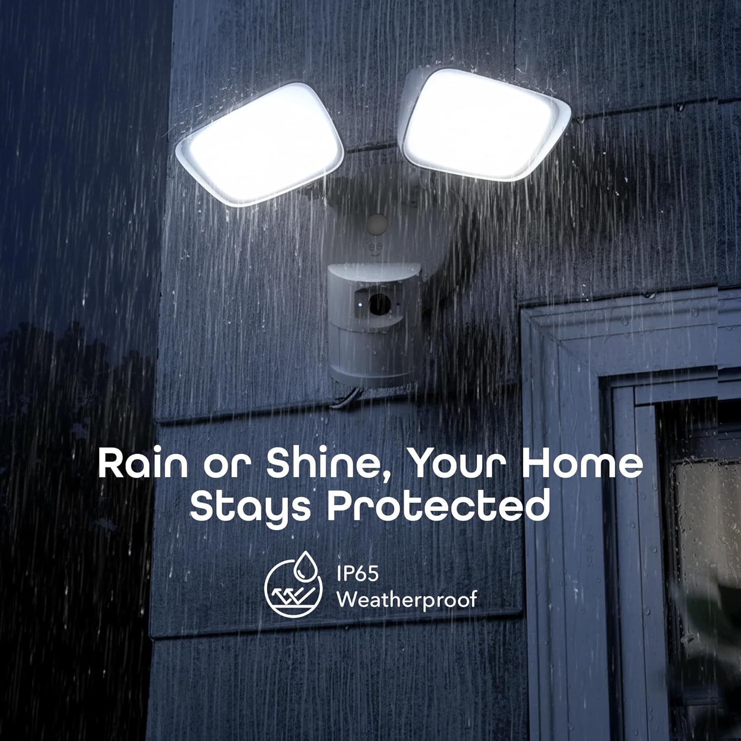 "Protect your home with confidence using the Geeni Lighthawk Floodlight Camera, designed to keep you connected and aware no matter where you are. This Wi-Fi-connected hardwired floodlight camera combines bright illumination with smart monitoring to keep your home secure day and night. Enjoy 3MP Ultra-HD live streaming with a wide-angle lens that delivers clear video to your smartphone via the Geeni app. This floodlight cam lets you monitor your front door, garage, patio, or yard in real time, while motion alerts notify you of any activity. Built-in night vision ensures clear viewing after dark, and the integrated two-way audio lets you hear and speak through the camera. Use this floodlight security camera to greet visitors, communicate with delivery drivers, or help deter unwanted guests. As a motion light camera, it features a motion-activated spotlight and siren, and you can customize lighting schedules to match your routine. The IP65 weatherproof housing withstands rain, dust, heat, and cold, while this hardwired security camera light delivers continuous monitoring and works with Alexa and Google Assistant."