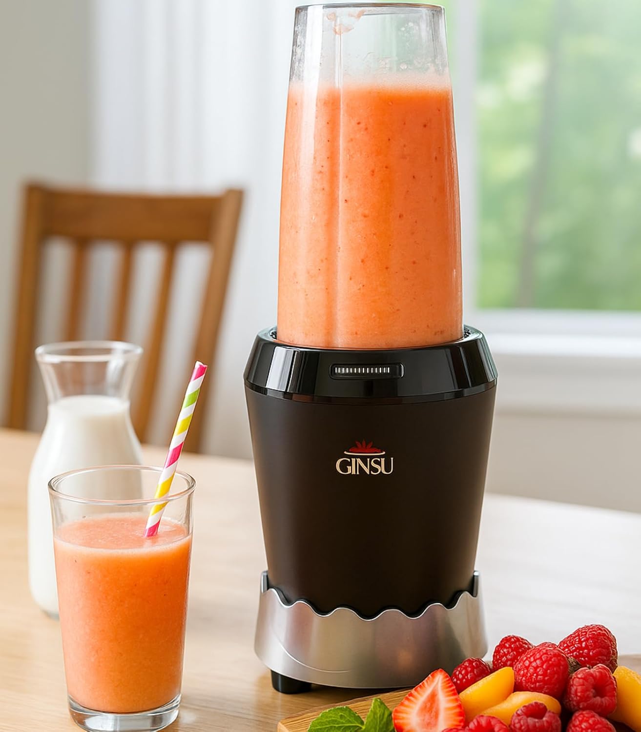 The GINSU 7-Piece Personal Blender is a powerhouse for the health-conscious individual, delivering professional-grade performance in a compact black design. Built with an ultra-strong 1000W motor and featuring robust Stainless Steel Blades, this blender tears through ice, nuts, seeds, and frozen ingredients with ease, guaranteeing ultra-smooth smoothies, shakes, and purees. The comprehensive 7 piece set provides maximum versatility and convenience, centered around the sleek black base. It includes three BPA Free Travel Cups in varying sizes—a small 10oz, a medium 18oz, and a large 24oz—each designed to be blended in directly and sealed with the included leak-proof travel lids. This means your blending jar instantly becomes your on-the-go bottle for the gym, office, or travel. The set also includes different lids, such as a shaker-style top, enhancing its functionality for protein powders and mixing. With its high power, premium blades, and versatile cup system, the Ginsu Personal Blender is the ultimate tool for fast, fresh, and perfectly blended nutrition.