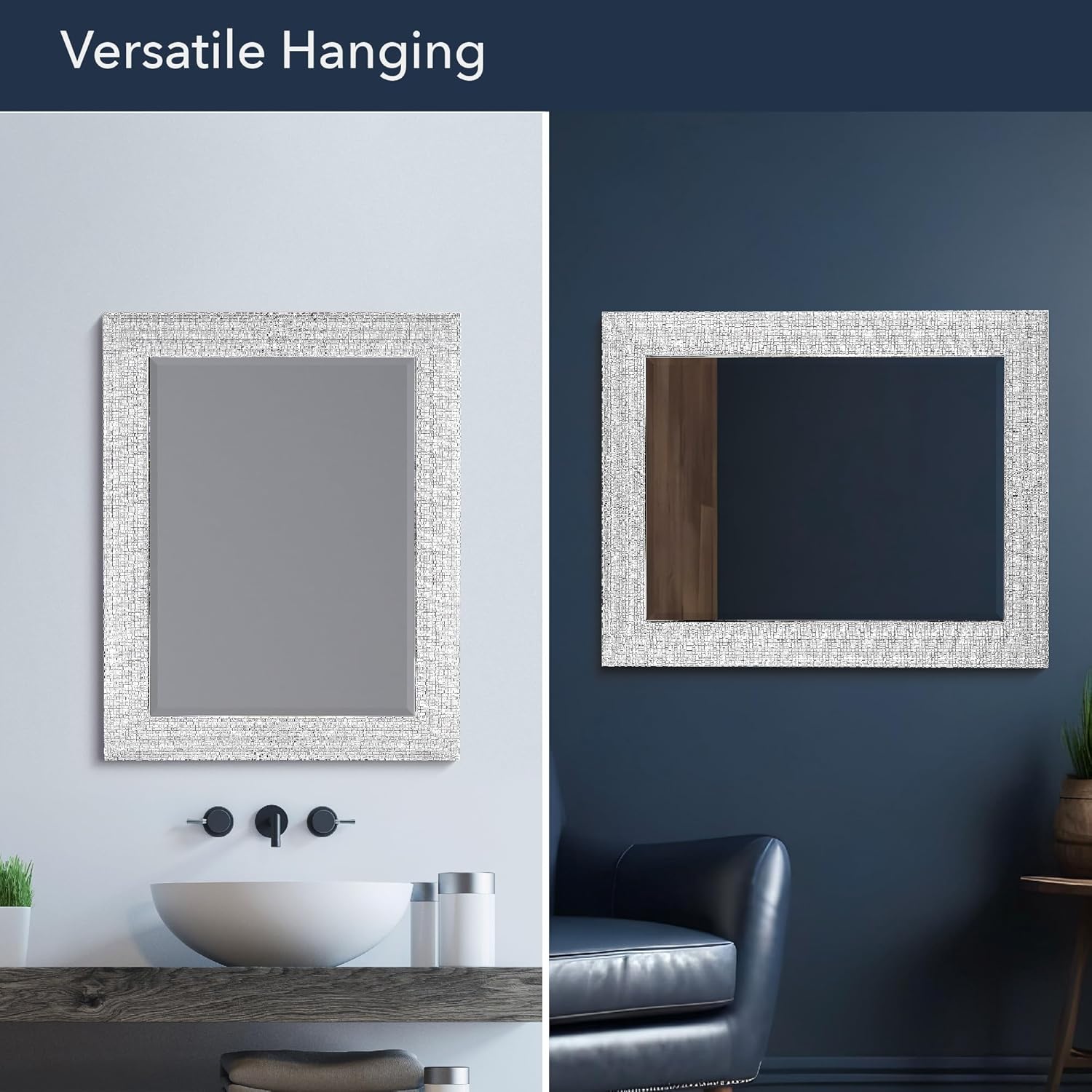 Add texture, interest, and create the illusion of more space in any room of your choosing with this unique beveled edge mirror. This mirror features a richly textured polystyrene frame that's perfect for modern living spaces. Subtle details like this mirror's beveled glass construction elevate the piece's luxurious and elegant allure. Meanwhile, its beautiful chrome-like silver frame highlights this mirror's unique textured design that makes it all the more enticing. Equipped to hang either horizontally or vertically, this beveled-edge mirror is perfect for spaces in need of an eye-catching accent piece.