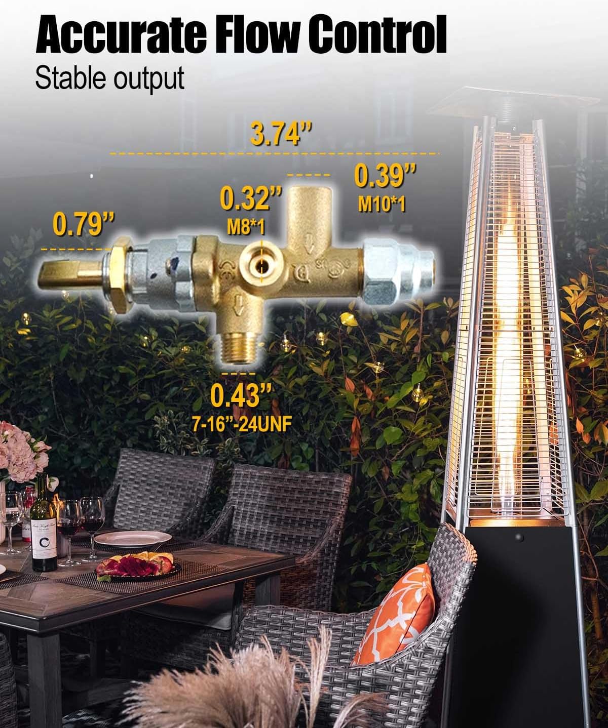 Upgrade your propane fire pit or patio heater with all-in-one Pilot Burner Kit with Main Control Brass Safety Valve, Aluminum Tube, Sealing Rings, and Safety DeviceUniversal replacement kit includes:Main Control Valve & Pilot Burner Assembly with inlet M101, outlet 7/16"-24 UNS, pilot thread M81Aluminum Tube & Sealing Rings: 39.5" long aluminum tube (0.16"/4mm) with 2 pcs copper sealing rings, plus internal and external M8*1 threaded pipe sets for secure, leak-proof installationPilot Wires: 25cm main wire + 20cm spare wire, 4.8mm flat universal terminalTHP-ATM Micro Anti-Tilt Dump Switch (250VAC/16A, 125VAC/20A) for added safetyConstructed from durable metal and corrosion-resistant materials, kit is designed for outdoor conditions, providing reliable ignition and stable gas flow. Suitable for propane fire pits, patio heaters, tank top heaters, cabinet heaters, and other outdoor gas appliances⚠️ Note: Designed for propane appliances only. Not compatible with natural gas heaters. Always test connections for leaks after installation
