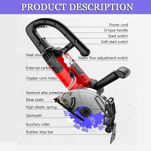 The concrete slotting machine is an essential tool for construction and renovation enthusiasts, designed to deliver precision cutting with a depth range of 1-7 cm. Its versatility makes it suitable for a variety of applications, from installing pipes to creating decorative grooves in walls. Featuring an adjustable pinhole double jet outlet, this machine ensures effective water management during operation, helping to maintain a clean working environment. With a powerful 2800W motor and a load power of 6800W, this machine operates at an impressive speed of 8000r/min, allowing you to complete your projects quickly and efficiently. Weighing only 6KG and compactly sized at 52*22*13CM (20.5*8.7*5.1"), it is easy to handle and transport, making it ideal for both professional contractors and DIY enthusiasts. The 2.6-meter power cord provides ample reach, enhancing your mobility on the job site. The sawtooth, weighing just 0.35KG, is designed for easy replacement, ensuring minimal downtime during your projects. Please keep in mind that manual measurements may lead to a size error of 1-3mm, and slight color variations might occur due to different screen displays. Invest in this concrete slotting machine and experience the perfect blend of efficiency and precision for your next construction project.