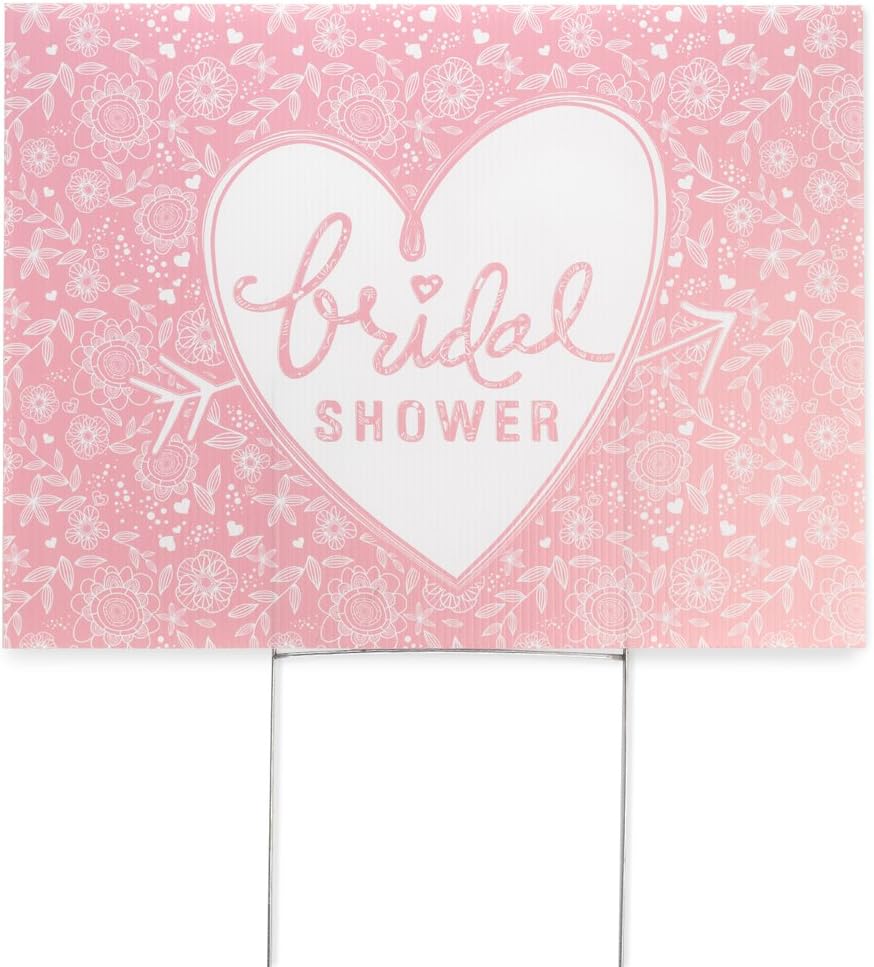 Planning a special bridal shower? Then this is a must have Sign so guests don't get lost on their way to the celebration! White with gold text, 18 x 24-inch paperboard yard Sign is printed on both sides; metal stake included. Throw a shower she'll remember forever with classic or trendy party supplies from Hortense B. Hewitt! With more than 60 years experience making occasions special, HBH has thousands of beautiful wedding day accessories, bridal shower musts, bachelorette party Novelties, and anniversary mementos. Take a look at what Hortense B. Hewitt has to offer, and you won't be disappointed. Sign created and printed in the U. S. A. ; Beware of counterfeits by ordering directly from or other trusted retailers.
