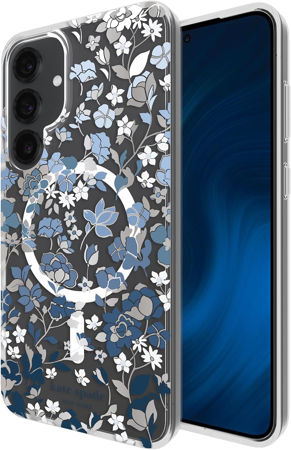 Introducing the stunning kate spade new york Samsung Galaxy S25 case (6.2 Inch) adorned in a blue flowerbed design complemented by delicate gemstones and silver accents.Crafted for the discerning individual, this designer Samsung Galaxy S25 case provides unparalleled protection with 12ft drop resistance and seamless compatibility with all magnetic and Qi wireless chargers. It features an anti-scratch coating that keeps your case dazzlingly clear. With precise cutouts for easy access to all buttons and ports, enjoy the perfect blend of style, functionality, and reliable protection.Elevate your device to a new level of sophistication with this harmonious fusion.kate spade new york Samsung Galaxy S25 Case Features:Flowerbed Blue DesignSilver and Gemstone DetailsCompatible with Magnetic and Qi wireless chargerDoes Not Block Reverse Wireless Charging (PowerShare)Compatible with Magnetic Accessories12ft Drop Protection5G CompatibleAnti-Scratch CoatingMade of Premium MaterialsPrecise CutoutsLimited Lifetime WarrantyWho are we: kate spade new york is a renowned brand recognized for its stylish and vibrant accessories. With a strong emphasis on fashion and functionality, our phone cases provide reliable protection while showcasing chic designs. Our diverse collection offers a range of slim and trendy cases that allow you to express your style.