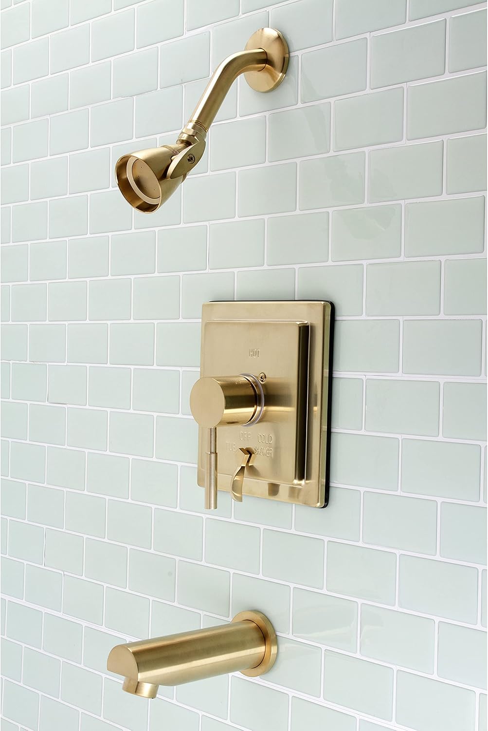 Dive into modern design with the sleek and cylindrical styling of this tub and shower faucet. Complete with an easy-to-turn lever handle, an optimum bathing experience awaits. Enjoy the sturdy brass construction and premium brushed brass finish for a fixture that will last for years to come. A pressure balanced valve is included for safety and protection against accidental burns.