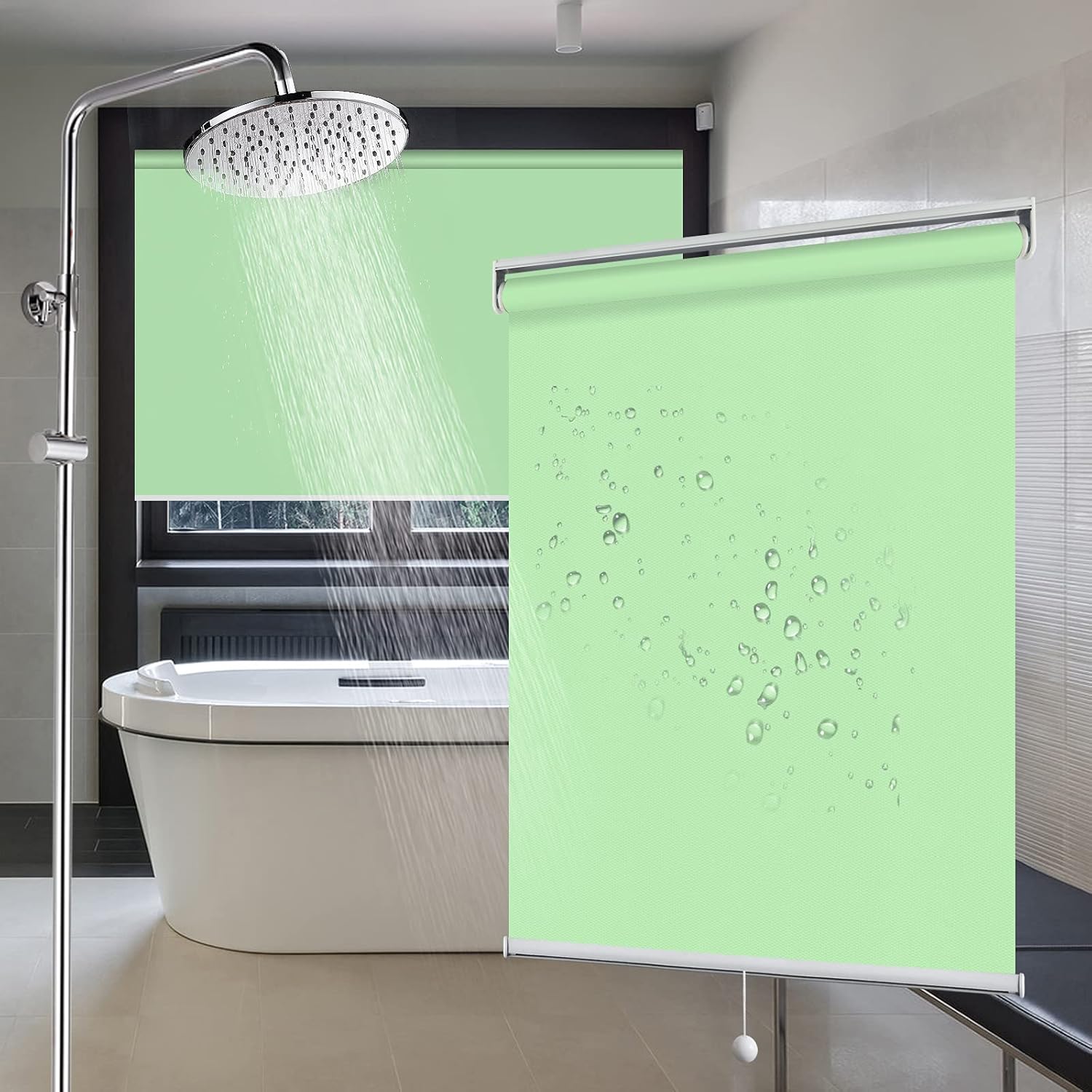 MOUNT TYPES: Inside mounted shades will have a deduction taken of approximately 1/4" to ensure a proper fit inside the window frame.Inside mounted shades require a minimum frame depth of 2.5inch for secure installation. If your window frame depth is less than 2.5inch please select outside mount.Outside mounted shades should be ordered with the exact width of the area you wish to cover. Outside mounts are often used when there is not sufficient frame depth for inside mounting.Our shades come with all mounting hardware, and mounting hardware for both inside mount and outside mountINSIDE MOUNT MEASUREMENT: Step 1.Measure the inside frame width at three locations-the top,middle,and bottom. Record the smallest of the 3 measurements and use that number deduct 1/4inch as your inside width when ordering.Step 2. Measure the height at 3 locations-the left,middle,and right side. Record the smallest of the 3 measurements and use the number as your inside width when ordering.OUTSIDE MOUNT MEASUREMENT: Step 1. Measure the outside frame width adding 6-10inch to be the outside mount width.Step 2. Measure the outside frame length adding 5-10inch to be the outside mount length. The overlap it recommended to allow appropriate coverage and avoid any light gaps.Type: Solid color roller shade.Feature: Thermal Blackout Waterproof Material: Polyester FabricInstallation: All Mounting Hardware Included.