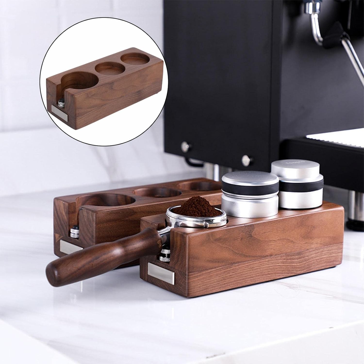 Coffee tamper holder barista coffee espresso tampering tamper holder home coffee accessories.With the design of the slot, the coffee handle card slot is customized, the powder pressing is stable and the shaking is reduced, and the powder pressing device can be placed nearby for easy access.Anti-skid foot pad. there are four antiskid foot pads at the bottom of the base, which can effectively prevent slipping and abrasion of the desktop, and the pressing powder is more stable and labor-saving.Natural material, and reassuring, wood texture, looks more beautiful.Surface varnish treatment, overall round and smooth, holding in hand, excellent feel.Specification:Material: WoodSize Chart:Vertical 58MM: 240x95x73.5mm/9.45x3.74x2.89inchTriangular 51/53mm: 154x140x73.5mm/6.06x5.51x2.89inchTriangular 58MM: 170x156.6x73.5mm/6.69x6.17x2.89inchPackage Includes:1 Piece Coffee Tamper Holder.Note:Color might be slightly different due to the color calibration of each individual monitor.Please allow slightly measuring deviation due to manual measurement.Multi-Purpose- Add touch to your kitchen with this design. More than a coffee maker. Many uses including frothing milk for lattes, hot chocolate and brewing tea. Even use it to warm honey, melt butter and coconut oil or make sauces!