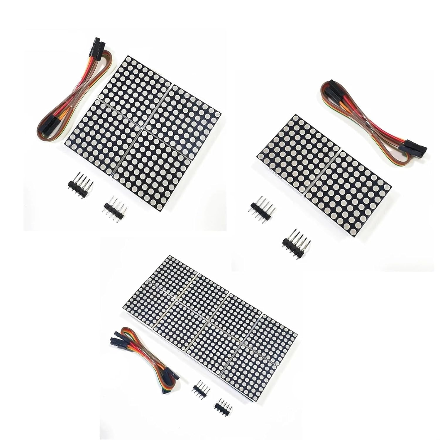 Sensor BlocksProduct Parameters: 1. A single module can drive an 8 * 8 common negative dot matrix 2. Module working voltage: 5 V 3. Module size: 13cm * 6.4cm * 1.3cm 4. With 32 fixing screw holes, hole diameter 3mm 5. Module with input and output interface, support multiple modules cascade Wiring Instructions: 1. The left side of the module is the input port, and the right side is the output port. 2. When controlling a single module, only need to connect the input port to the CPU 3. When multiple modules are cascaded, the input terminal of the first module is connected to the CPU, the output terminal is connected to the input terminal of the second module, the output terminal of the second module is connected to the input terminal of the third module, and so on. Instruction Manual: Take 51 microcontroller as an example: VCC - 5V GND - GND DIN - P2.2 CS - P2.1 CLK - P2.0