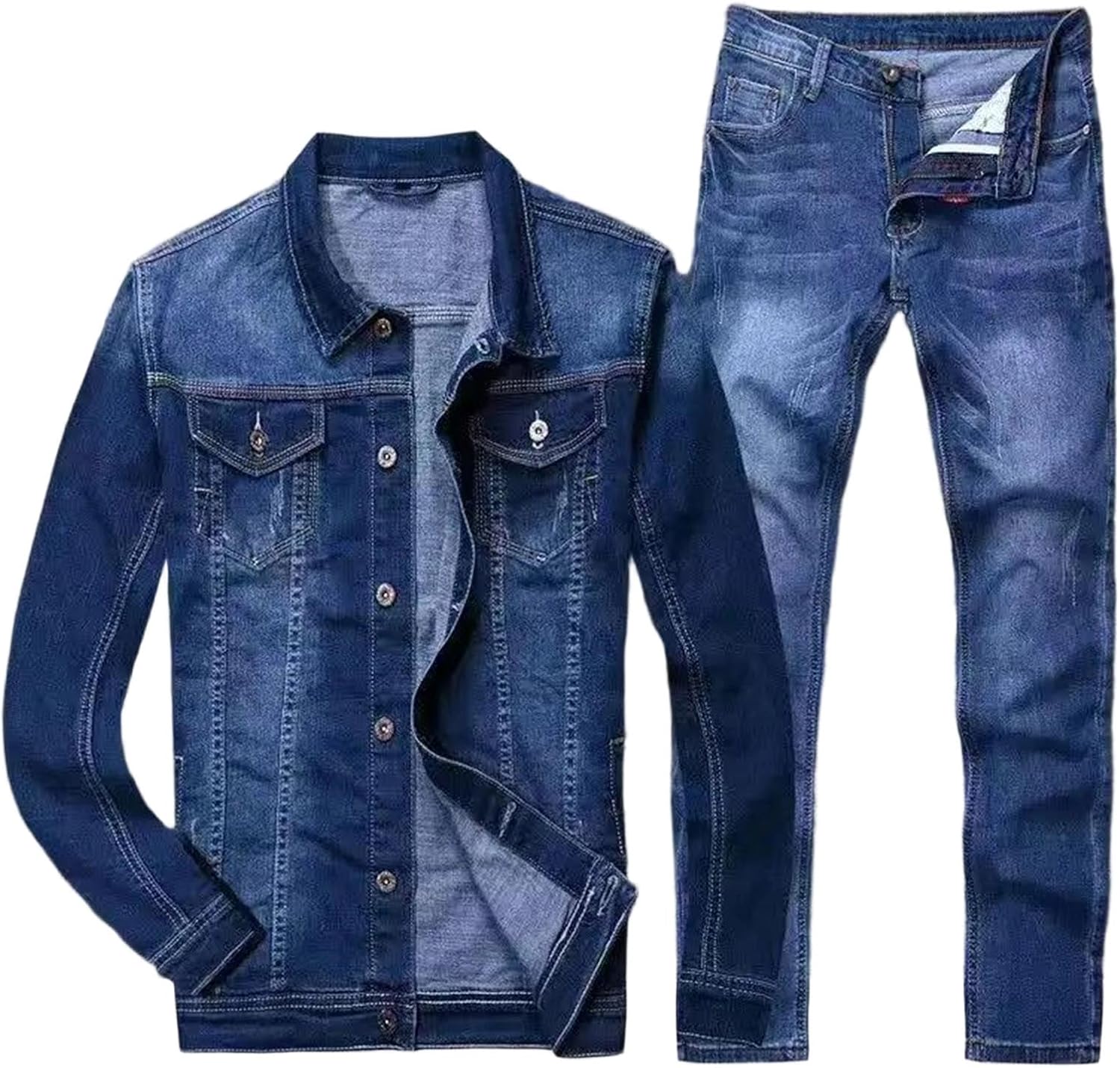 Material:Denim,CottonClosure Type:Single BreastedWhether Full Opening:YesThickness:StandardApplicable Season:AutumnApplicable Scene:DailyOut Side Length:Nine CentsPant Closure Type:Button FlyStyle:CasualSleeve Length(Cm):FullGender:Men