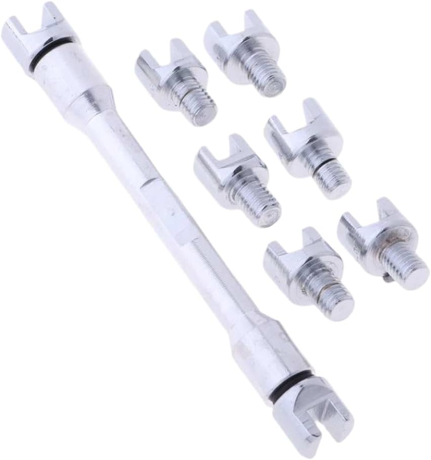 Motorcycle Wheel Spoke Wrench Set Handle Repair Tool 5.4mm, 5.6mm, 5.8mm, 6.0mm, 6.2mm, 6.4mm, 6.6mm, 6.8mm Spoke Nipples Interchangeable tips to fit 8 sizes of spoke nipples.Includes tip sizes: 5.4mm, 5.6mm, 5.8mm, 6.0mm, 6.2mm, 6.4mm, 6.6mm, and 6.8mm.Suitable for adjusting spoke tension and correcting buckled wheels.Tips are made of heat-treated steel for strength.Size (L x W): 130 x 15mm / 5.1 x 0.6 inch.Package includes: 1 set spoke wrench.