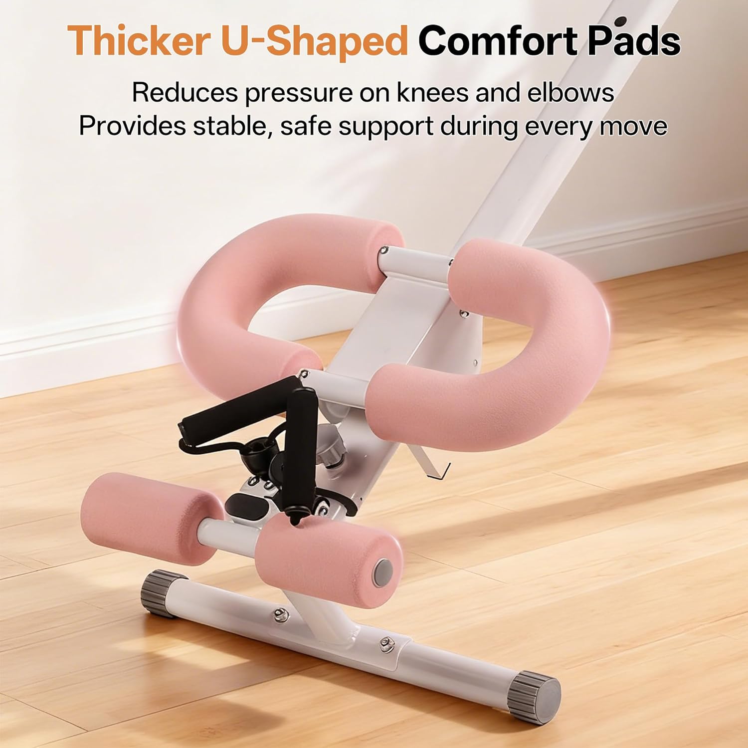 【6-in-1 Full-Body Workout Machine】This multifunctional ab trainer replaces several bulky home gym machines. Perform ab glider, knee crunches, leg presses, rowing, hip extensions, and core stability exercises—all on one compact device. 【Adjustable for All Fitness Levels】Designed with 7 height settings and 2 incline angles, allowing beginners to advanced users to customize resistance, strengthen the core, and sculpt the waist at their own pace. 【Strengthens Core, Abs, Glutes & Legs】The smooth sliding track engages the abs, obliques, lower back, glutes, hips, arms, and legs. Perfect for shaping the waistline, improving posture, and building full-body strength with low impact. 【Upgraded Comfort & Joint-Friendly Design】Features a thick U-shaped foam pad, ergonomic handles, and silent multi-wheel rail system for stable and comfortable movement. Protects knees and reduces pressure during repetitive core workouts. 【Foldable, Space-Saving & Smart Tracking】The compact foldable design makes storage easy for small apartments or home gyms. Built-in LCD monitor tracks count, time, calories, helping you monitor progress and stay motivated.