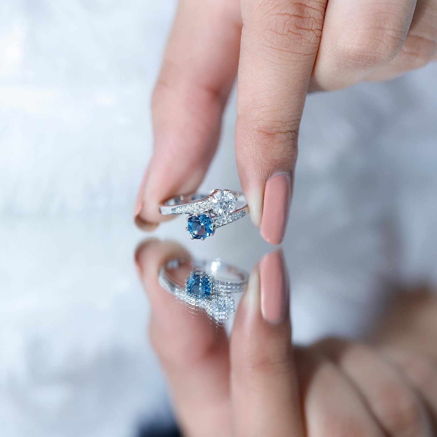 | Gem Type | London Blue Topaz, Moissanite |