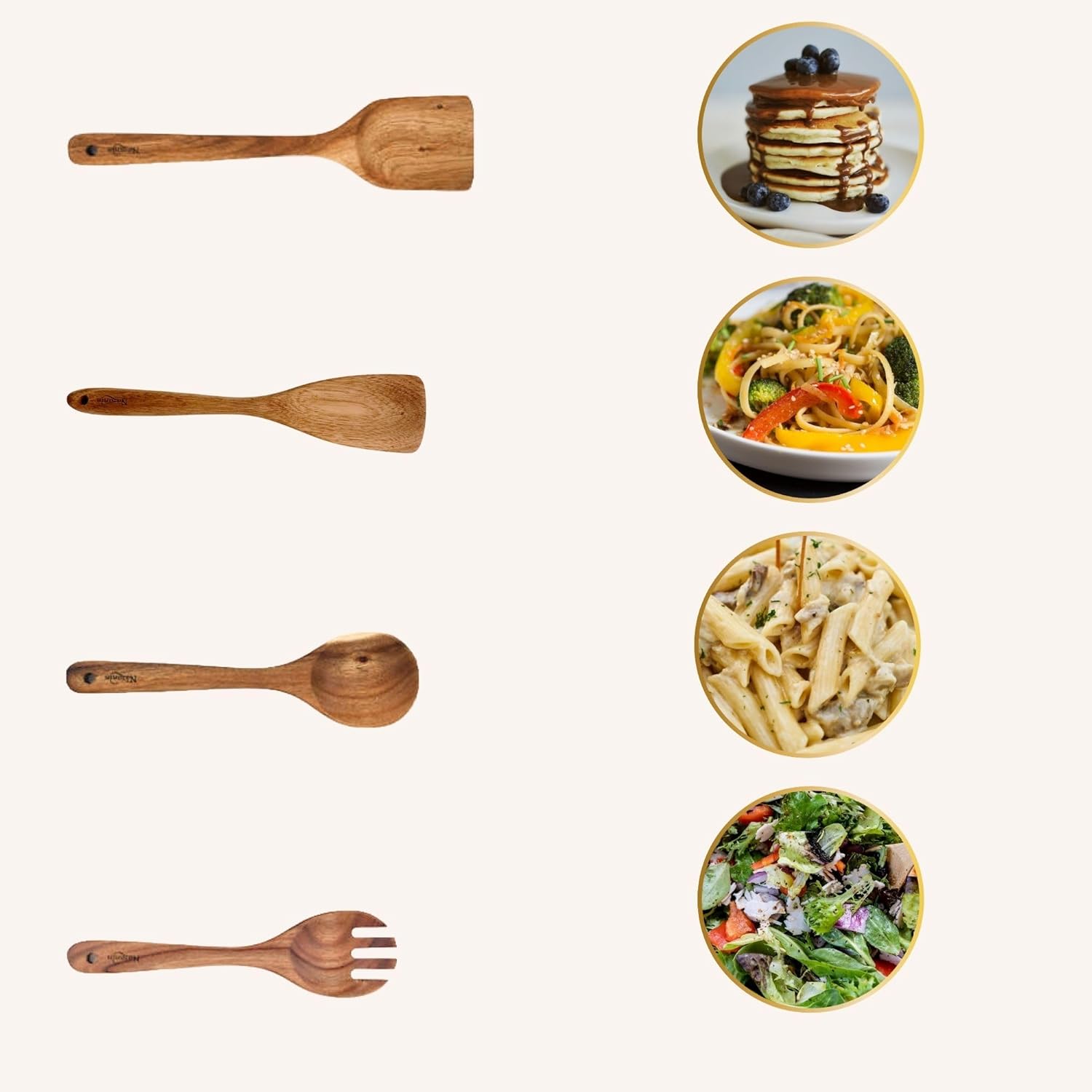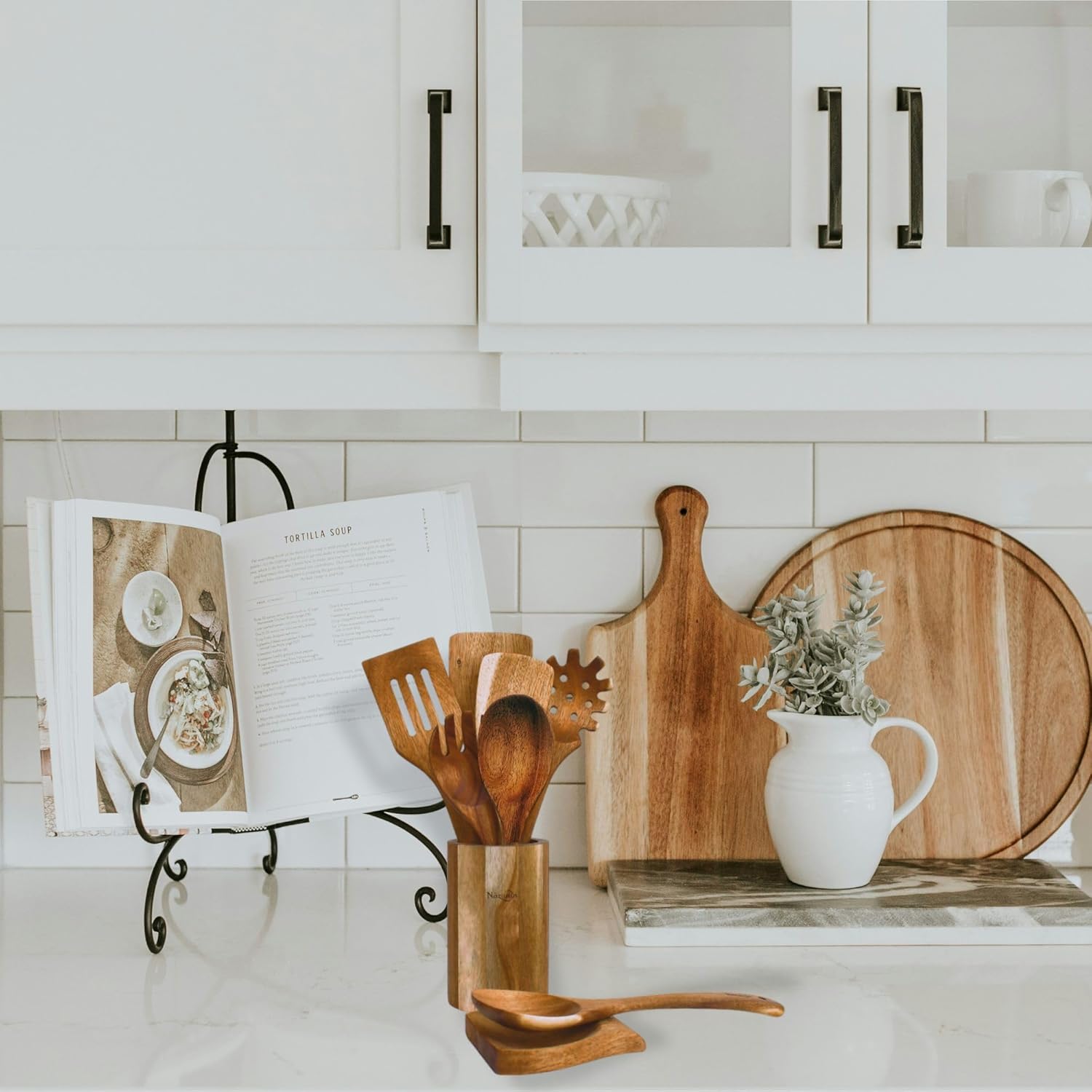 Elevate Your Kitchen with Timeless Style – The NAZANIN 9-Piece Acacia Wood Utensil Set! Bring elegance, warmth, and functionality to your kitchen with the NAZANIN Acacia Wood Cooking Utensil Set—a naturally beautiful 9-piece collection designed for everyday cooking and sophisticated entertaining. Made from 100% premium, dense acacia, each utensil is crafted for superior performance and features a rich, unique grain that adds a rustic, farmhouse aesthetic to any kitchen. The Non-Scratch, Durable Difference: Stop compromising between durability and safety. Metal utensils scratch your non-stick coatings, and cheap plastics can melt. NAZANIN offers the perfect solution: ** Cookware Protection: Our naturally smooth acacia is completely non-scratch, guaranteeing the longevity of your expensive pots and pans. ** Built to Last: Acacia is renowned for its durability and heat resistance, making it one of the strongest woods for kitchen tools. It won't easily warp, crack, or stain, even with daily, rigorous use. 9 Pieces for Every Task: This complete utensil set includes every essential tool for versatile cooking and serving, all organized in a matching Acacia Utensil Holder: ** The Seven Essential Tools: Wide Turner, Angled Spatula, Slotted Spatula, Pasta Server, Salad Fork, Salad Spoon, and Mixing Spoon. ** Organization Bonus: Includes the custom-fit Utensil Holder and a dedicated Spoon Rest to keep your countertops clean while you cook. Easy Care for a Lifetime of Beauty: To preserve the rich color and beautiful grain of your NAZANIN set, simply hand-wash with mild soap and warm water, then rinse and wipe dry. These utensils are not suitable for the dishwasher. This small act of care ensures your set remains a stunning, functional centerpiece for years to come.
