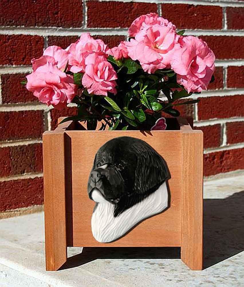 Newfoundland Planter Flower Pot LandseerThese stunning Newfoundland planters are a great year round gift. They are designed for indoor and outdoor use so they can be placed inside or outside as the seasons change. Each planter is made of solid pine. The pine is sealed to help protect the integrity of the planter. Each planter features a hand painted face of your favorite dog breed. Proudly made in the USA, these planters can house a lush plant or flowers. The bottom of these planters contain perforated PVC to allow for water drainage. Give this planter as a housewarming gift, birthday gift, or hostess gift!Material: PineMade in the USAMeasures apprx 9x9x8"Interior dimensions: 6 3/4" squareHand PaintedIndoor/Outdoor UsePerforated Bottom for DrainageFlower Not IncludedPlease allow 7-10 days from date of purchase before shipment for production of product.If ordering for a holiday gift be sure to order at least 3-4 weeks before Christmas.