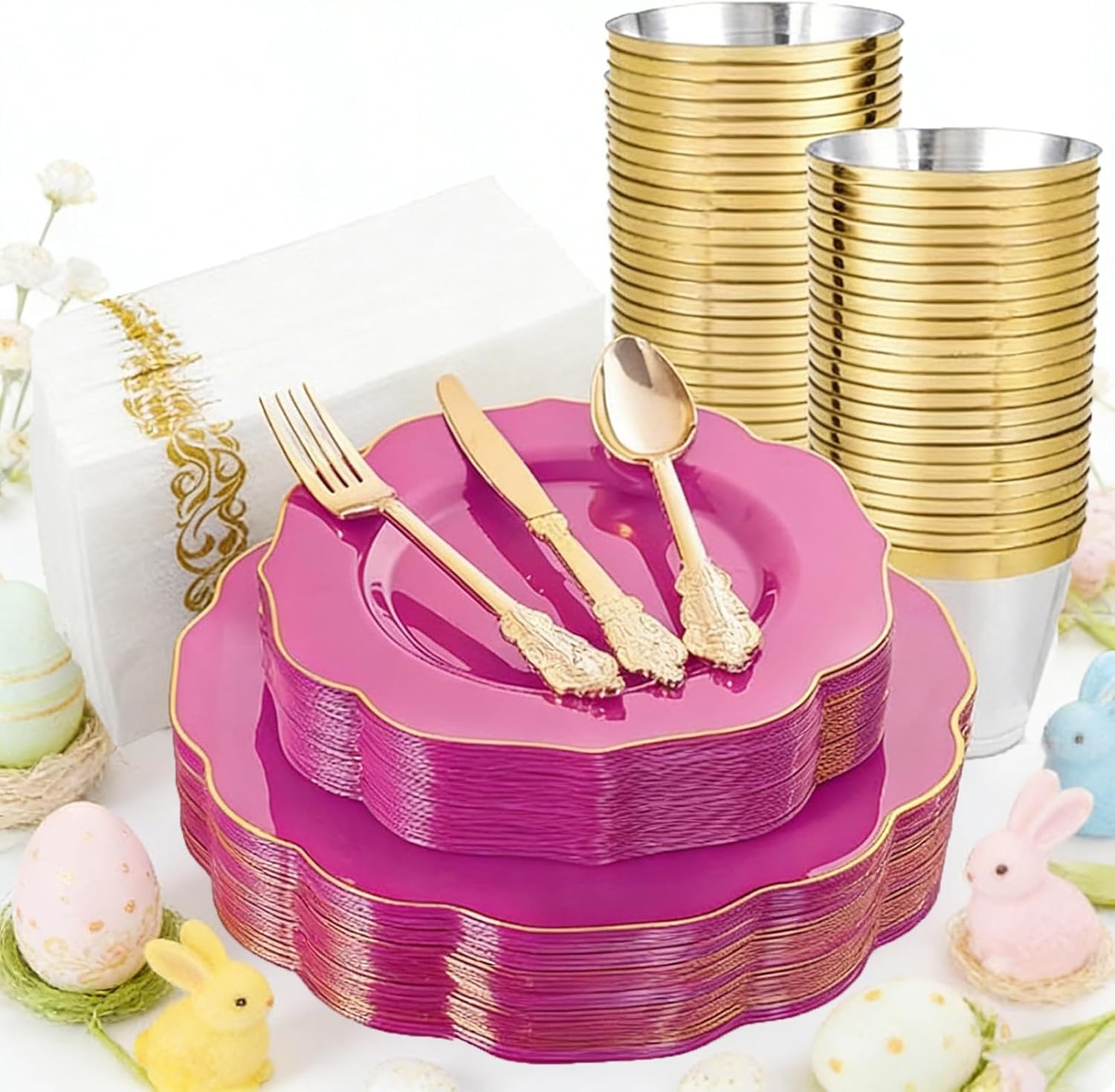 | Included Components | 25 Cups, 25 Napkins, 50 Plates: 25PCS Dinner Plates, 25PCS Dessert Plates, 75 Cutlery: 25PCS Gold Knives, 25PCS Gold Forks, 25PCS Gold Spoons |