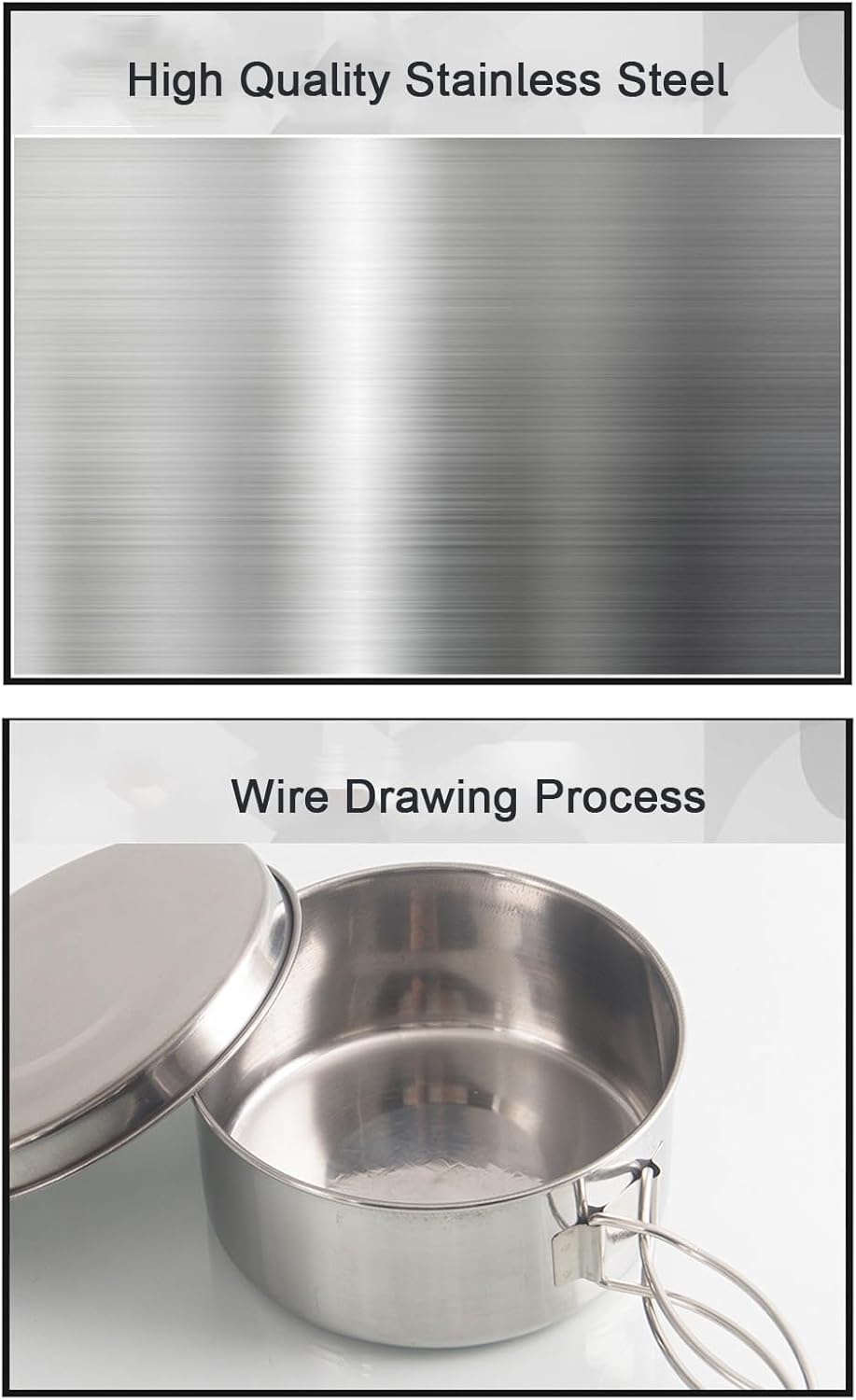 The stainless steel camping pot has good heat conduction, which makes outdoor cooking easier and quicker.Camping pan with portable design, the cookware is convenient for you to store when they are not used.You can enjoy the great camping without second guessing with these camping pans.Widely suitable for picnic, hiking, camping, climbing, BBQ and other outdoor activities.Camping cookware kit is designed for camping people and come equipped with enough kitchen essentials.Note: 1.Products are measured manually, there may be an error of 2-3cm, please refer to the actual situation.2. If you have any questions after receiving the goods, please contact us within 24 hours.