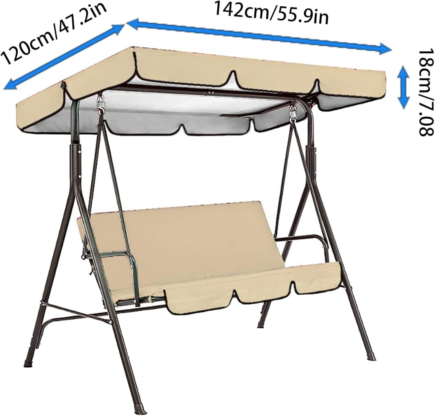 Patio Swing Canopy Waterproof Top Cover Set, Replacement Canopy Cover All Weather Protection for Swing Chair Awning Glider Cover Outdoor Garden Seat Covers (Blue, 55.9×47.2×7.1in)