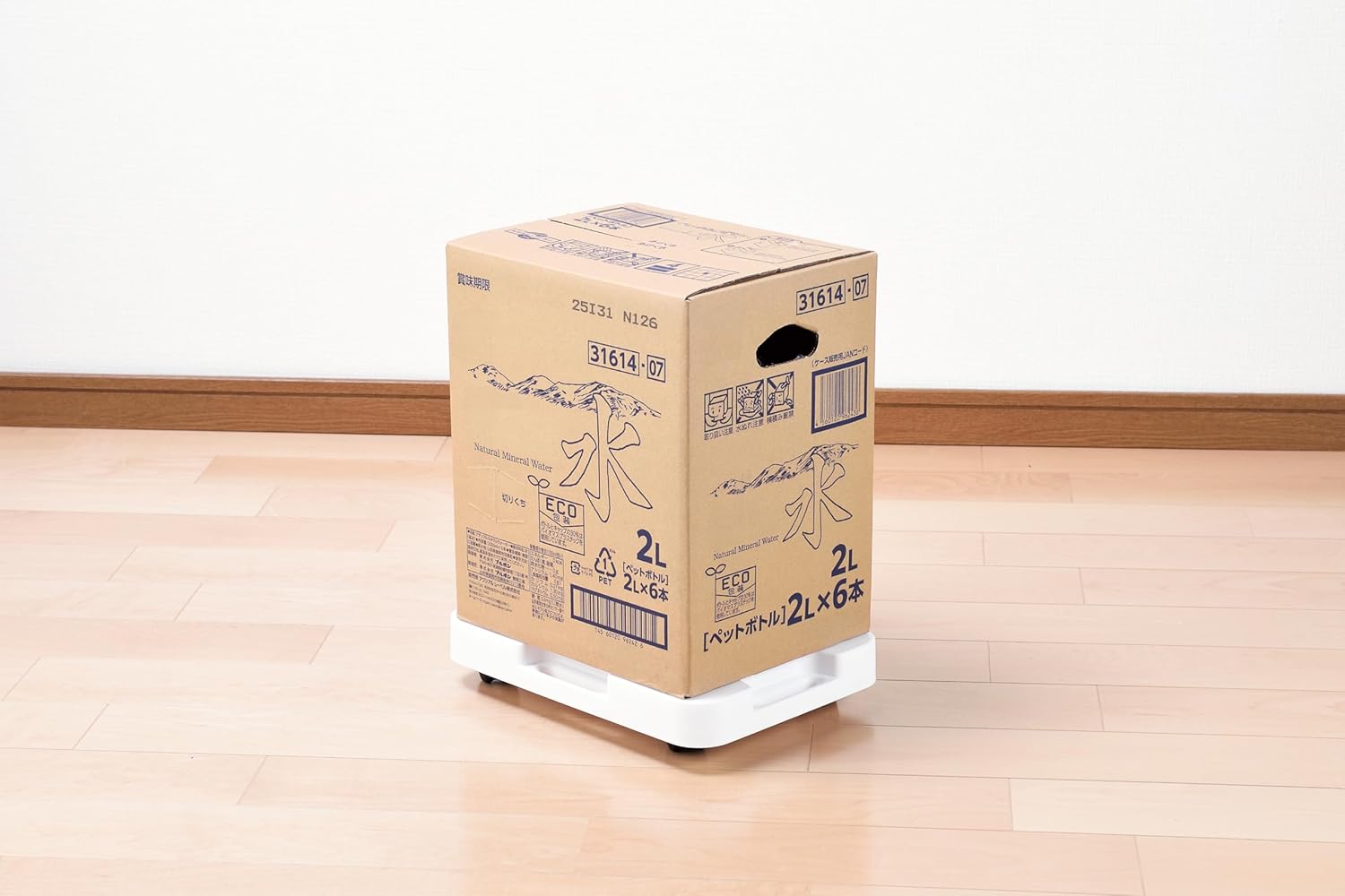 Product Size (W x D x H): Approx. 8.9 x 12.2 x 2.4 inches (22.5 x 31 x 6Product Weight: Approx. 1.1 lbs (0.502 kg). Materials: Resin, Join: Polypropylene, Other Materials: Casters Body: Nylon, Casters Shaft: Iron, Casters Shaft Cap: Thermoplastic Elastomer. Country of Manufacture: Japan. Product Size (W x D x H): Approx. 8.9 x 12.2 x 2.4 inches (22.5 x 31 x 6Product Weight: Approx. 1.1 lbs (0.502 kg). Materials: Resin, Join: Polypropylene, Other Materials: Casters Body: Nylon, Casters Shaft: Iron, Casters Shaft Cap: Thermoplastic Elastomer. Country of Manufacture: Japan. Linkable flat dolly Can be used in combination to suit your needs. Can be connected vertically and horizontally. Load Capacity: 44.1 lbs L size: Perfect for cases of 6 x 2L plastic bottles or 24 x 16.9 fl oz (500 ml) plastic bottles. Please use the load capacity within 44.1 lbs (20 kg). Please be aware that depending on the material of the floor surface, scratches and dents may remain. Even when used in conjunction, please do not exceed the weight capacity of each piece. When not in use, store the joint on the back of the main unit. Note: We will not be responsible for any breakdown, damage, accidents, etc. due to the sale or used sale or transfer. Thank you for your understanding