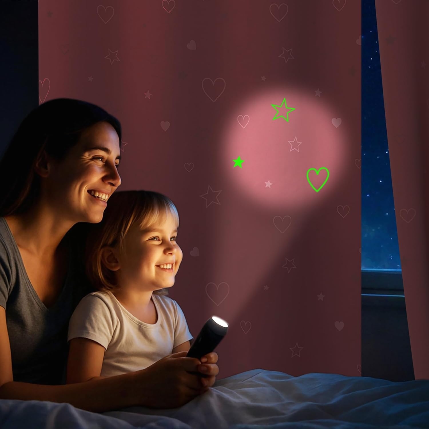 | Subject Character | Night light heart and star shaped minimalist pattern illuminated by a flashlight |