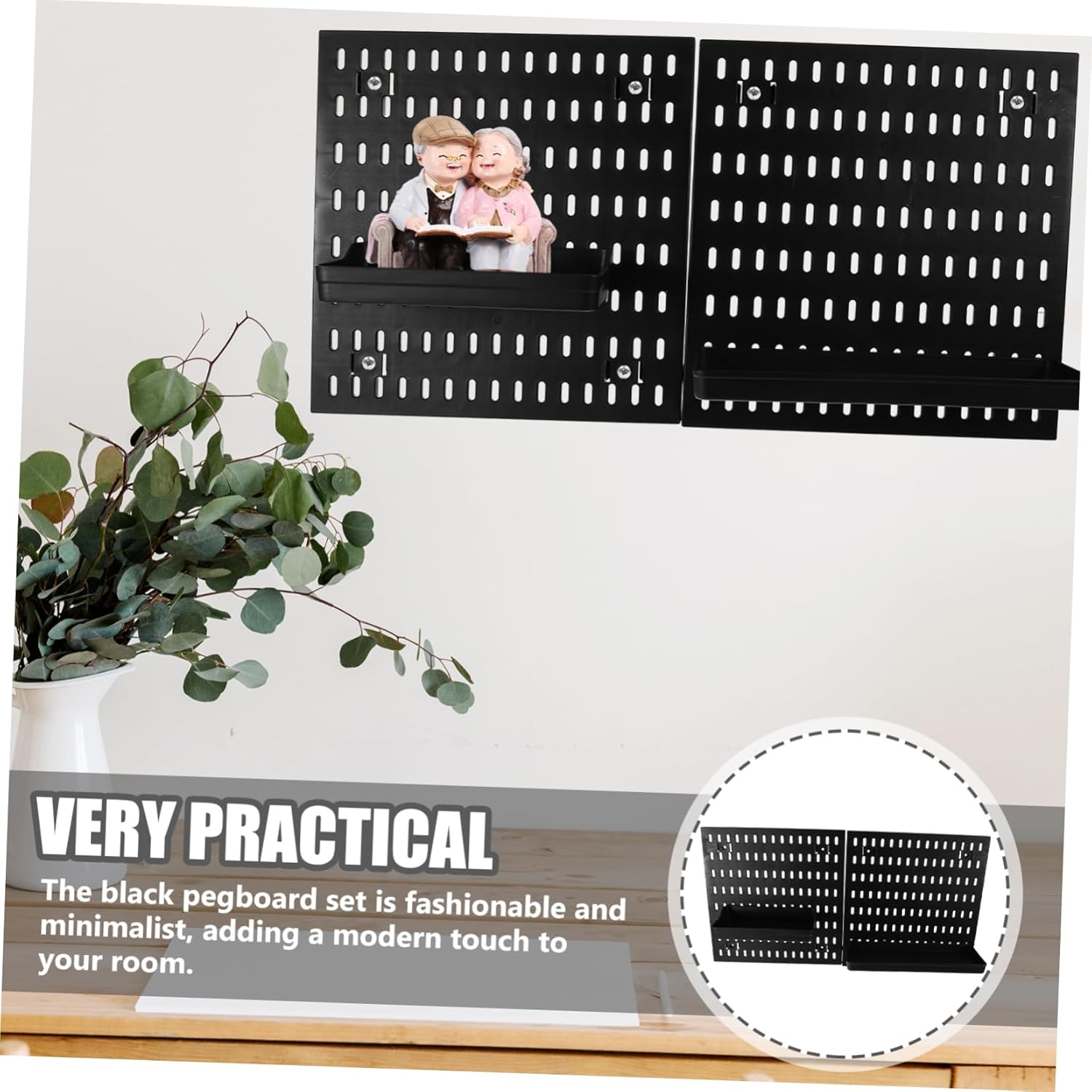 Package List 2 x Pegboards 1 x Large Size Shelf 1 x Medium Size Shelf 5 x Hooks Characteristics -Size:30.00X30.00X1.00cm/11.79X11.79X0.39in pegboard hooks -Material:Plastic wall mounted pegboard -Color:Black pegboard with hooks - Multi-functional, wall mounted pegboard with hooks could be used for kitchen, bathroom, living room and other places for easy storage of items wall pegboard. - Useful and safe, made of plastic material, and practical, display pegboard is practical to use door back pegboards. - No drilling installation, adopting wall-mounted design, simple to install and use, save space and effort pegboard storage rack. - Pegboard and hooks could be used for hanging towels, other small items, convenient and practical to use wall pegboard for storage. - The appearance is simple and stylish, suitable for various , easily meet your demands wall mounted display pegboard.Goods Informationwall mount pegboard Are you looking for professional and practical wall mounted pegboard? Are you in search of sturdy, trustworthy wall mounted pegboard for storage use? , ! Our wall mounted pegboard with hooks must meet your needs.wall pegboard for storage It is one of for you