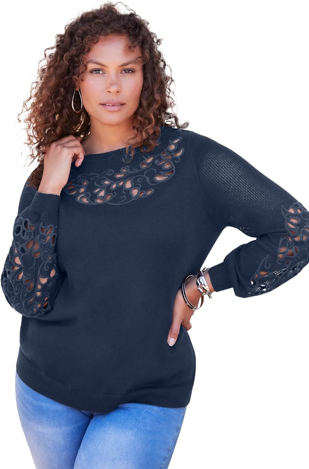 Roaman's Women's Plus Size Pullover Sweater with Cutout Detail